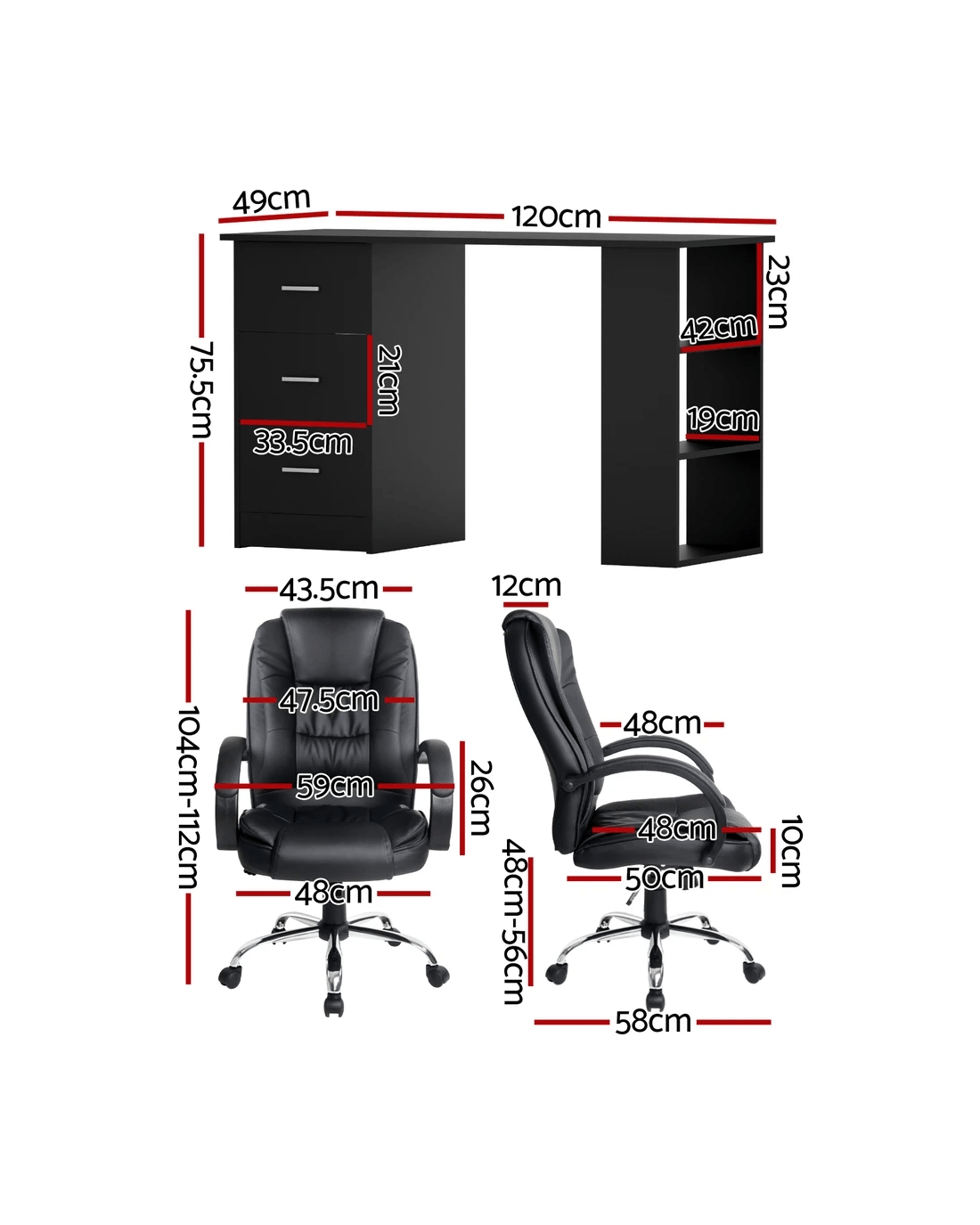 Sold by Aisle SixArtiss Computer Desk 120cm Executive Office Chair Set PU Leather High Back - Black