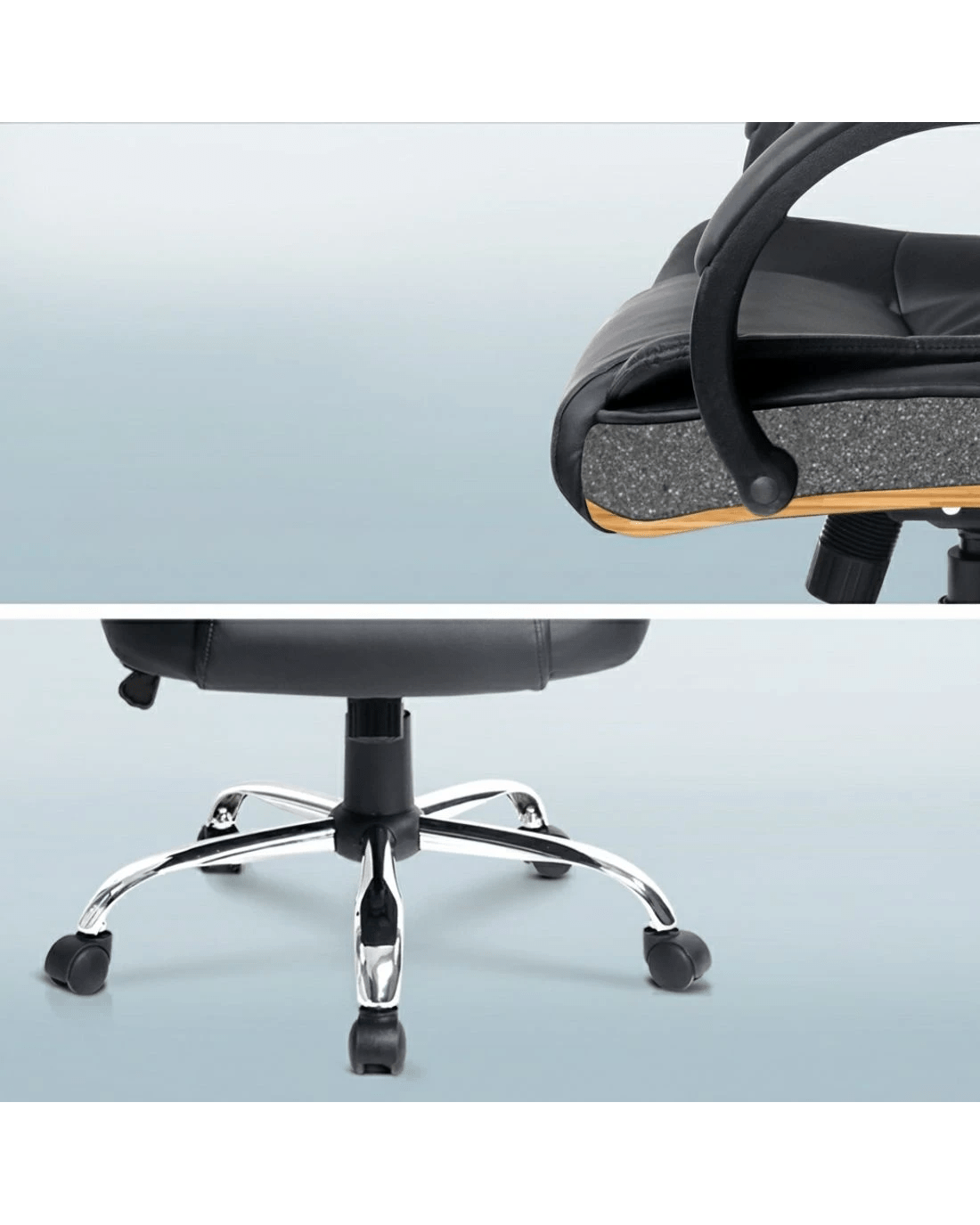 Durable chrome base with five castor wheels