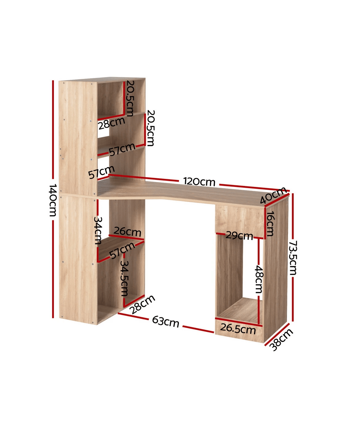 Artiss Computer Desk Bookshelf Drawer Cabinet 120CM - Brown