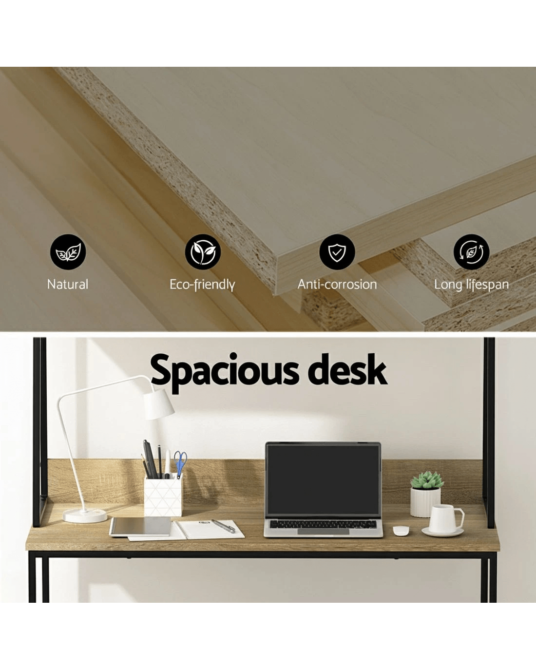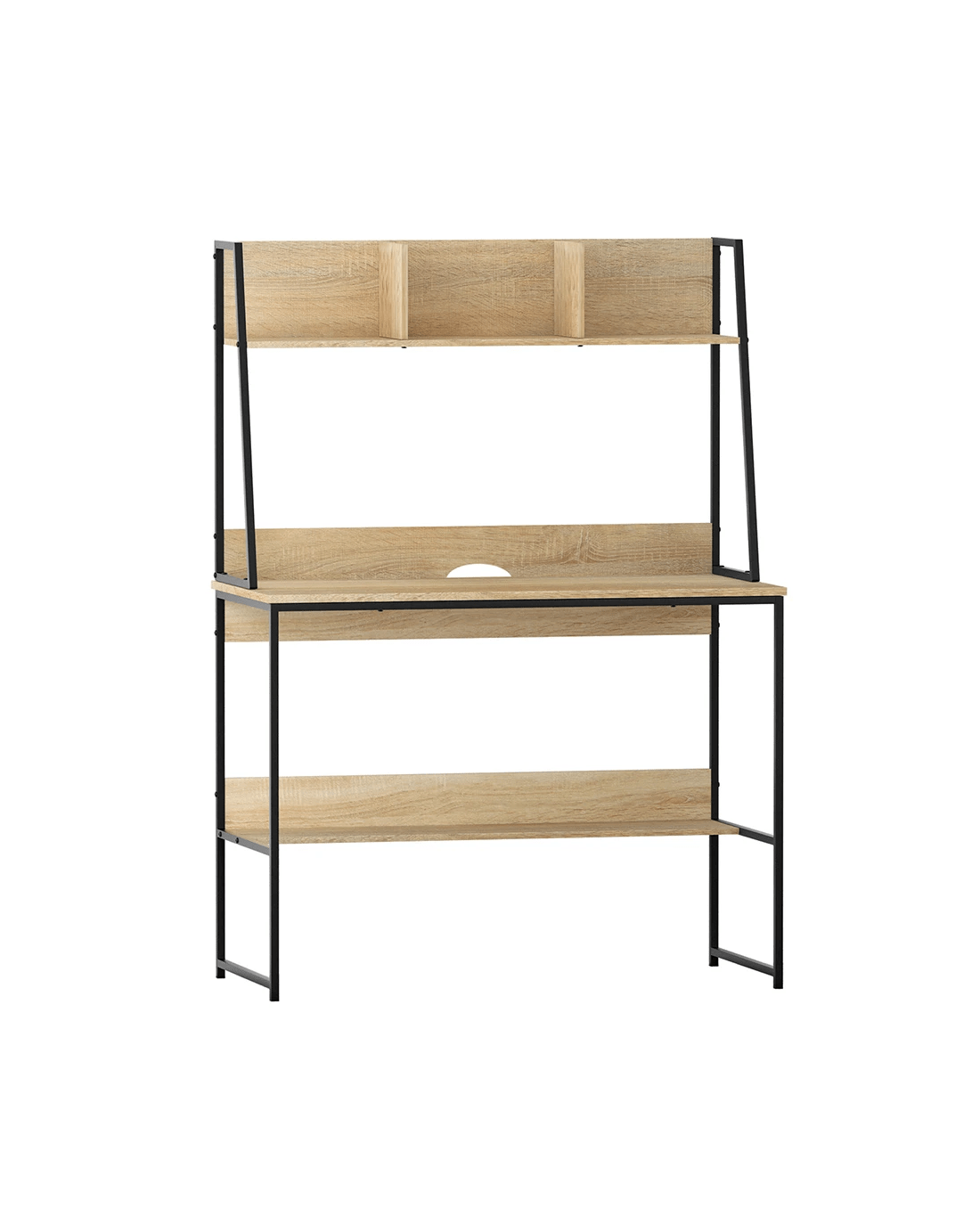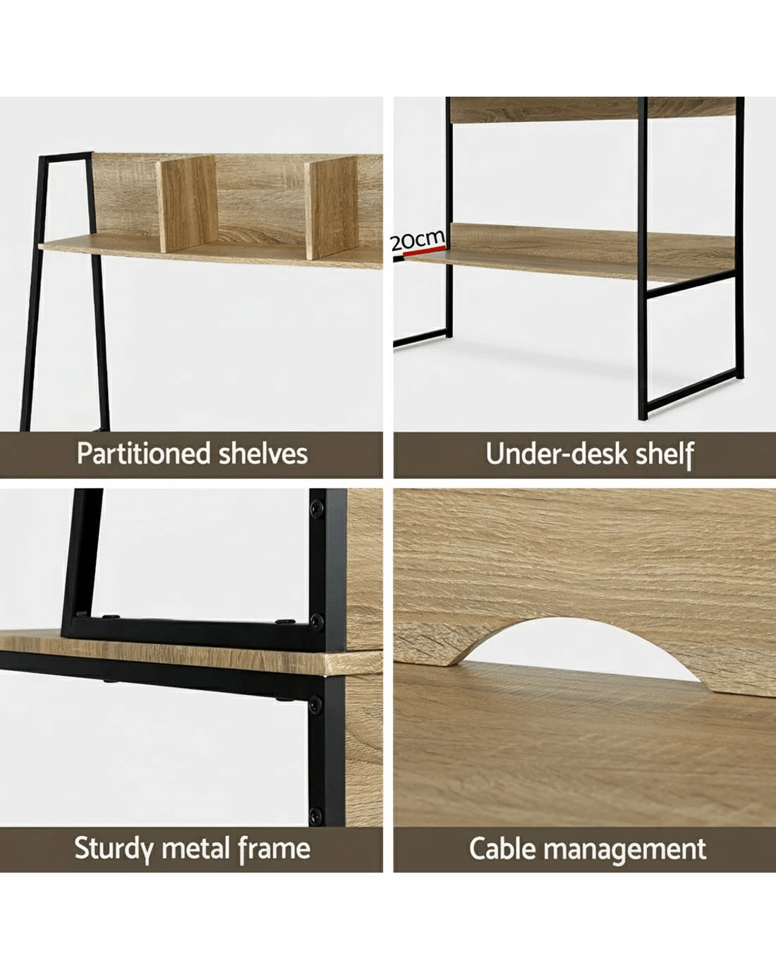 Having an efficient working space is a key to improving productivity and the ability to focus. If you are looking to set up your workspace but need something sleek, bring home our sophisticated and practical Artiss computer desk that's specially designed for smaller spaces. It makes an ideal purchase for any home office set up or study room. Our computer desk is the epitome of utmost simplicity and maximum functionality. It's meticulously crafted with a 12mm thick particle board and powder-coated steel frame to ensure long-lasting and robust use. It has a top partitioned shelf divided into three compartments that offers designated spaces to store your work essentials, a wide desktop to accommodate your table lamp, pen stand, and other knick-knacks, and an extra under-desk shelf space for more storage. Furthermore, the desk also comes with a built-in cable management to enable any cabling to be neatly streamlined under the desk and free the desk of any mess, and the anti-slip feet keep the computer desk stable. A piece designed with total efficiency and practicality in mind, you are sure to fall in love with our Artiss computer desk.