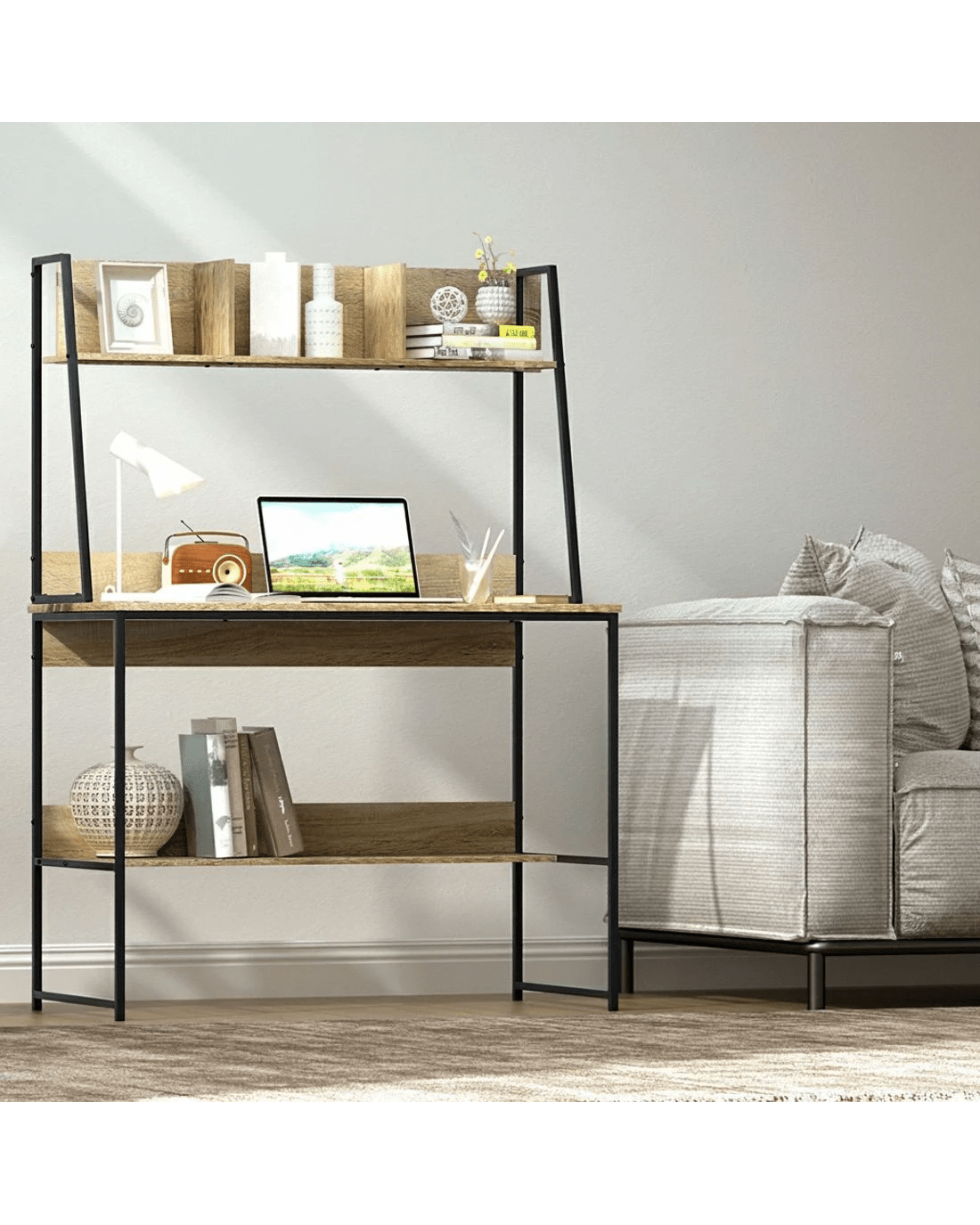 Sold by Aisle SixArtiss Computer Desk Bookshelf Storage 100CM Oak - Brown