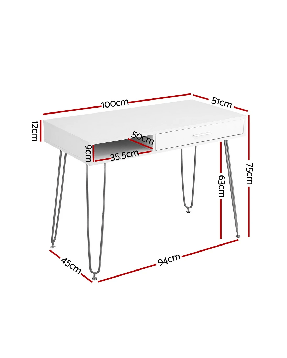 Maximize your productivity and style with the Artiss Computer Desk. This compact desk is designed for modern living, featuring a sleek white MDF desktop elegantly supported by trendy hairpin metal legs. It's the perfect blend of minimalist design and robust functionality, ideal for home offices, studios, or small apartments.
