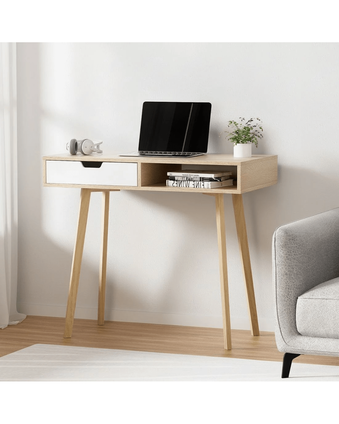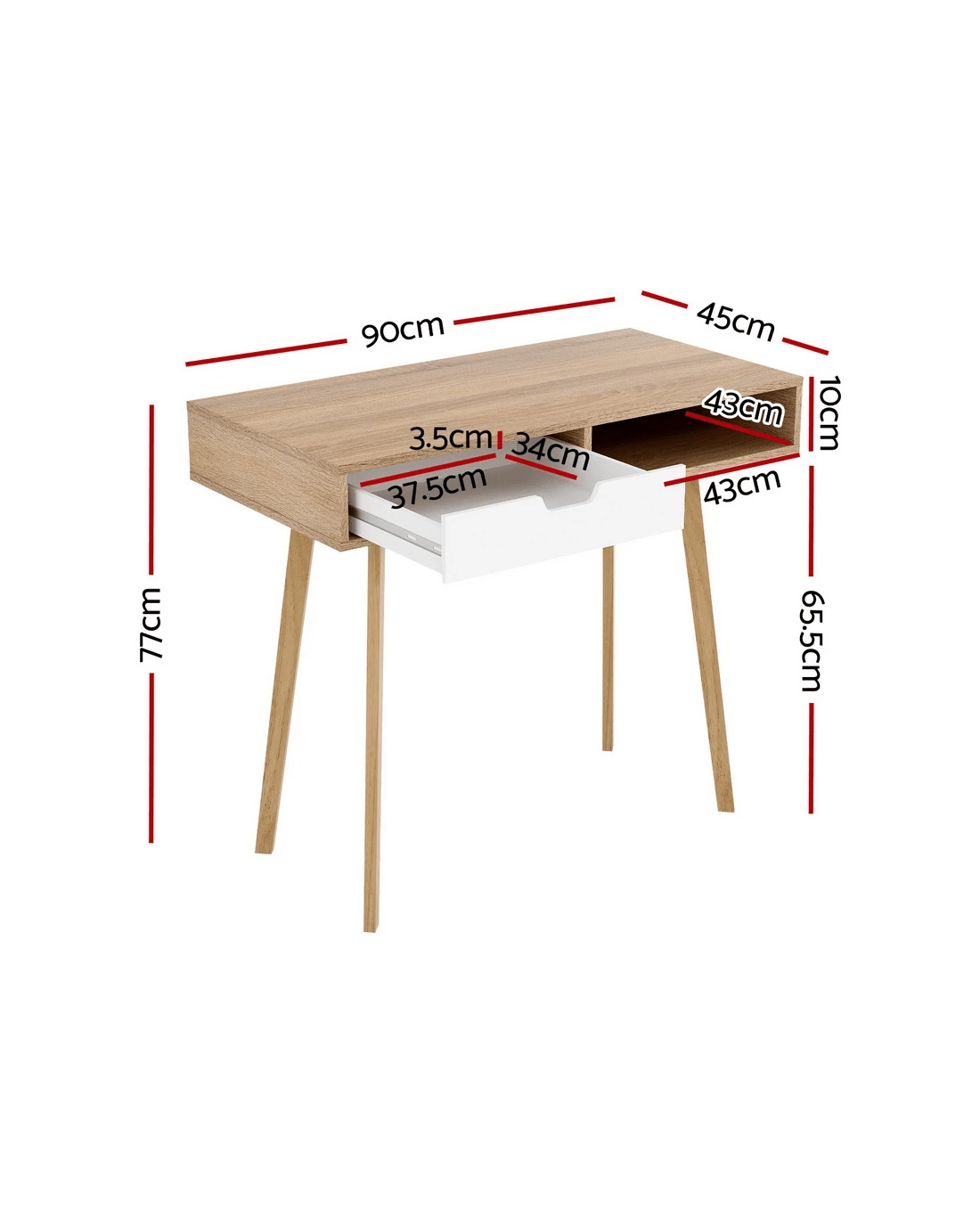 Artiss Computer Desk Drawer Cabinet Shelf Oak 90CM - Brown