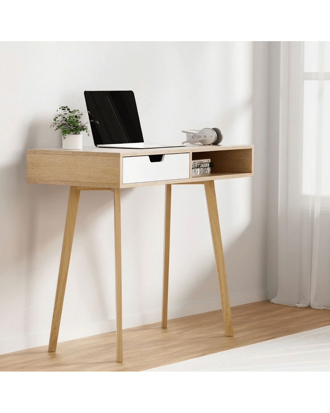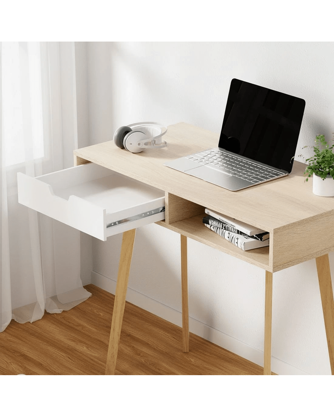Sometimes, not just any desk will do. Especially when you can have this premium finish computer desk that looks and feels absolutely amazing. With its contemporary two-tone hues, you'll love the simple lines that bring out its minimalist inclinations. Displaying a solid wood construction, the computer desk features a scratch-proof and easy clean Melamine laminate top, a convenient single drawer with adjoining open storage and other sublime details that make this computer desk stand out. Don't settle for less. You deserve the best with our computer desk.