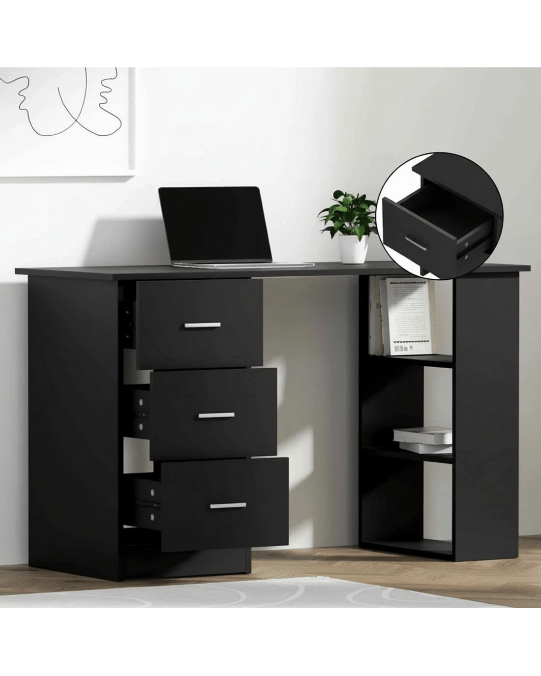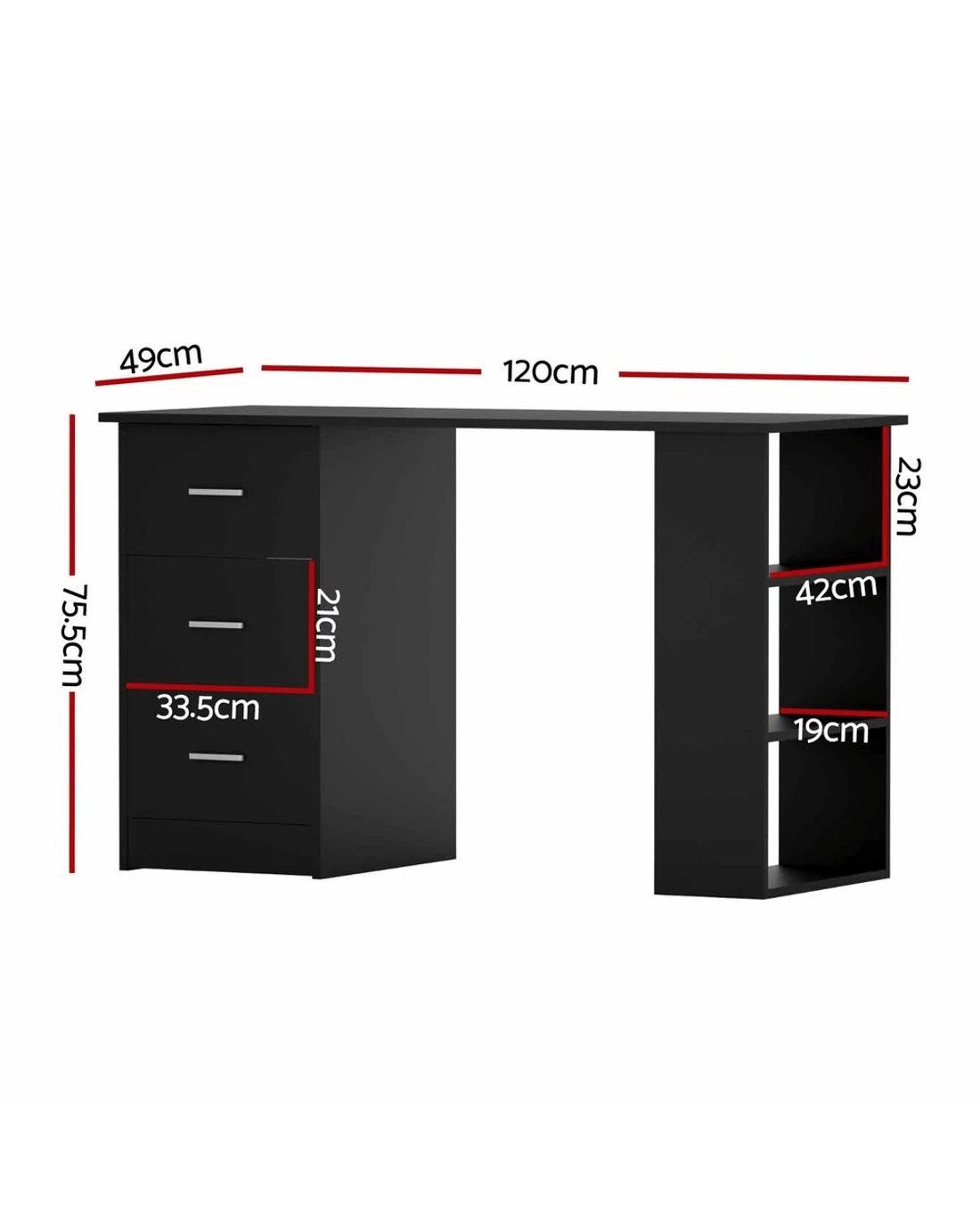 We know how it is. There is always a need for efficient working space with your desk. And with our Artiss Bobb Computer Desk, your request is duly answered. Made of durable 15mm thick particle board with a smooth melamine finish, our computer desk is meticulously crafted to ensure longlasting and robust use. Not only does the desk look good, it is also designed to have all your working and studying essentials close to you. With ample space comprising a spacious desktop, three drawers and three open shelves, our computer desk really works for you in more ways than one. Not least, the anti-slip base, anti-rust metal drawer runners and smooth drawer handles ensure this ensemble will not let you down in any measure. Easy to clean and maintain, our neutral black Artiss Bobb Computer Desk is a perfect match for any home decoration.
