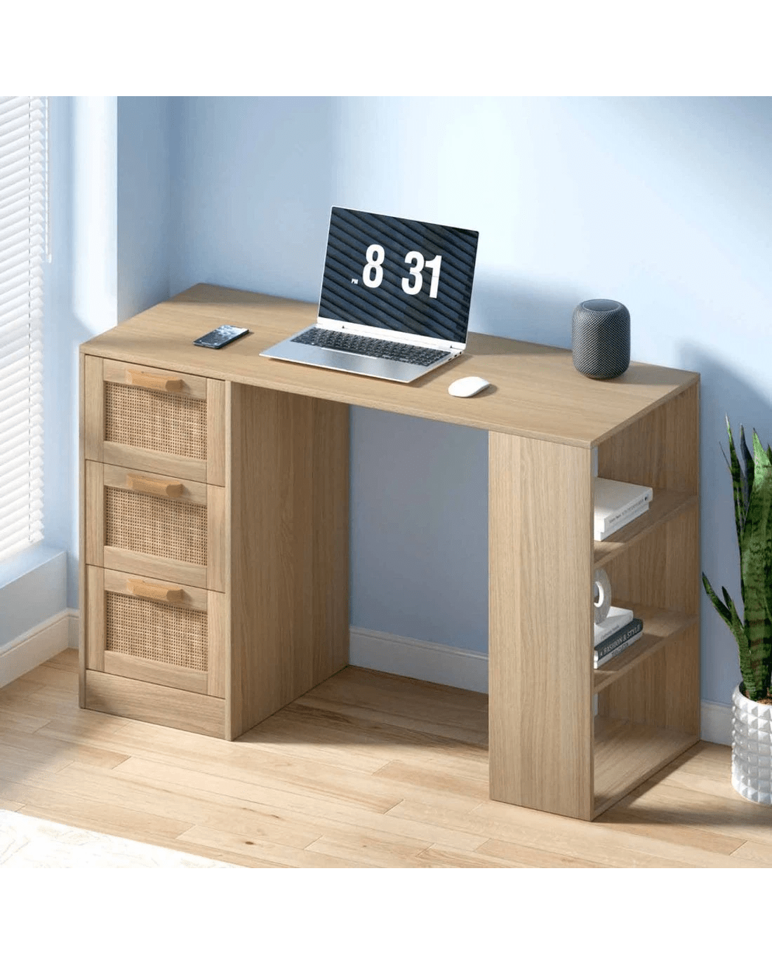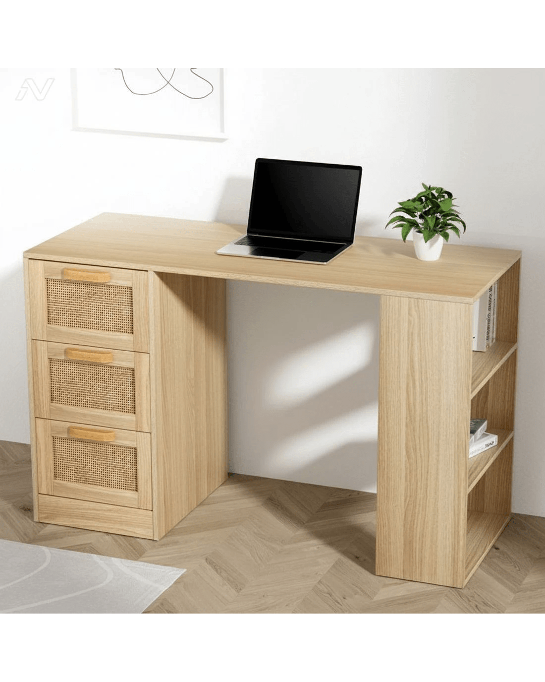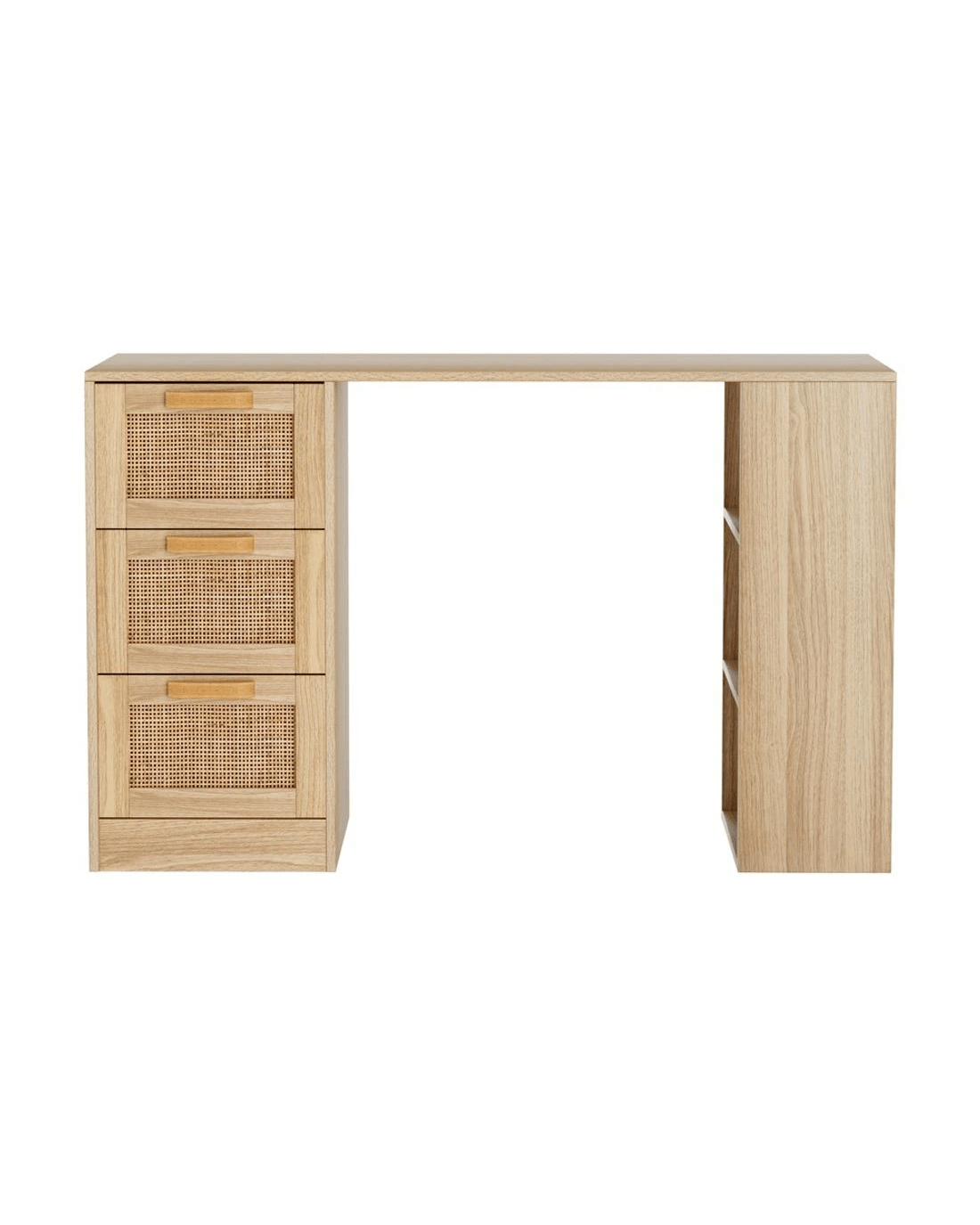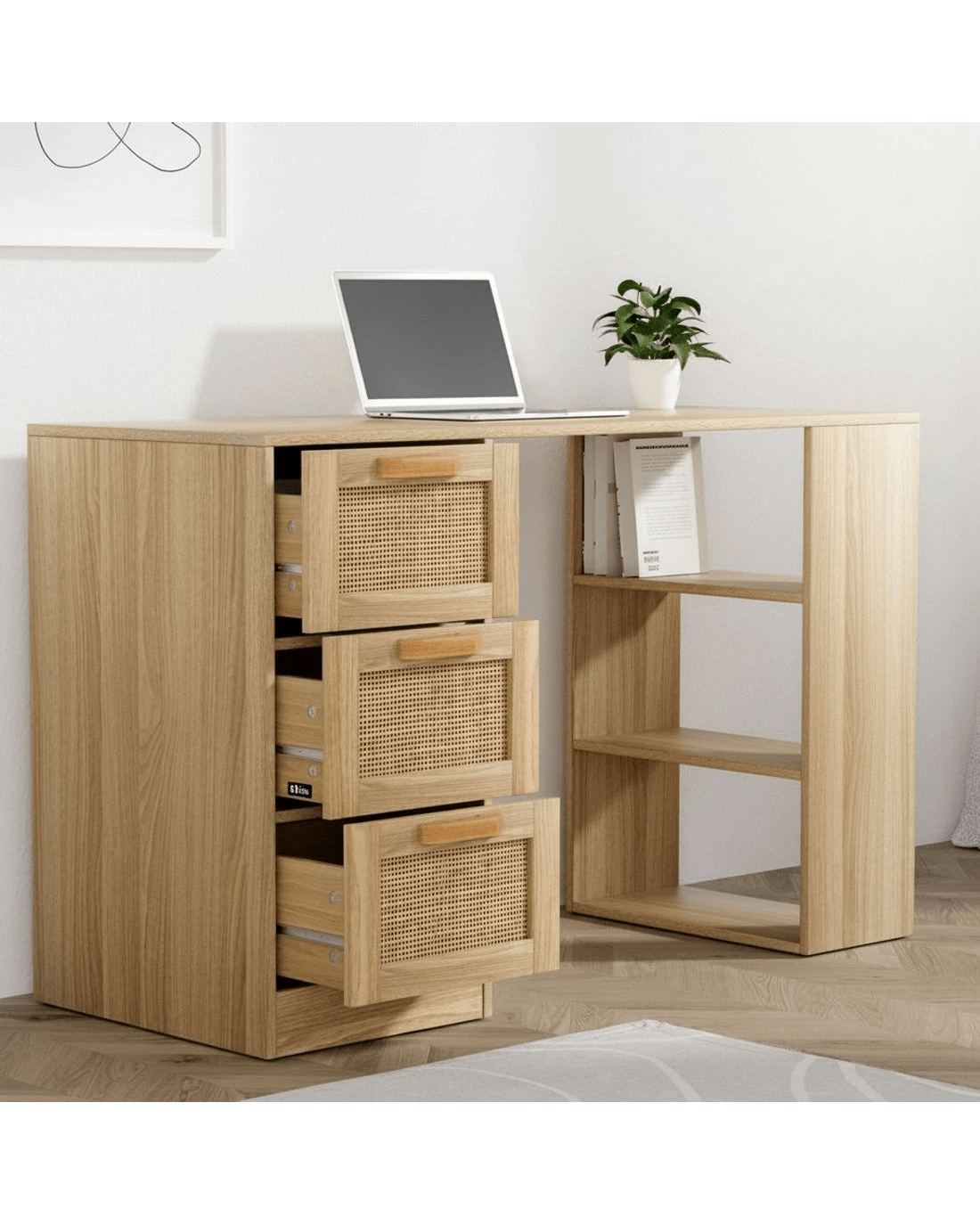 An efficient working space is a must when you work or study from home. With the Artiss Rattan Computer Desk, you'll be working in comfort and style. Made of durable 15mm thick particle board with a smooth melamine finish, our computer desk is meticulously crafted to ensure long-lasting and robust use. The drawers feature a genuine natural rattan front that will add a classic touch to your modern décor. Not only does the desk look good, it is also designed to have all your working and studying essentials close to you. With ample space comprising a spacious desktop, three drawers and three open shelves, our computer desk really works for you in more ways than one. Not least, the anti-slip base, anti-rust metal drawer runners and smooth drawer handles ensure this ensemble will not let you down in any measure. Easy to clean and maintain, the Artiss Rattan Computer Desk is the perfect match for any home office.