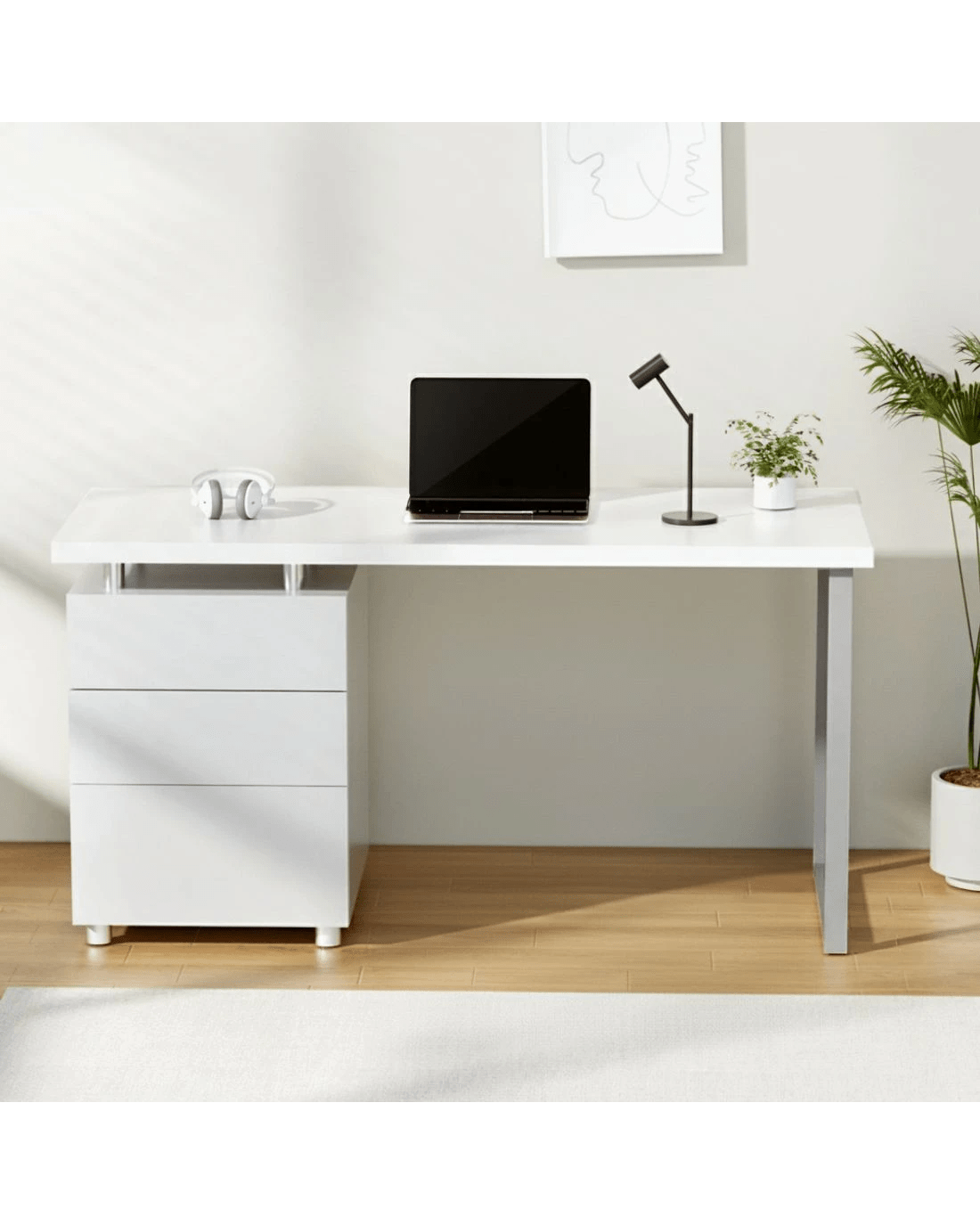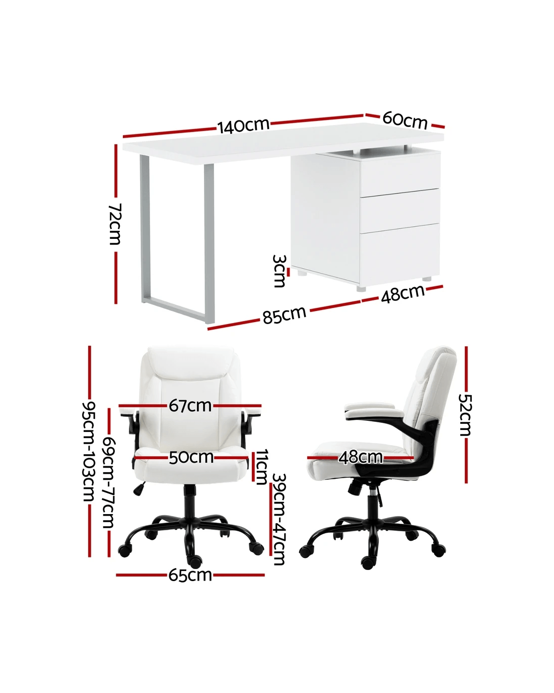 Upgrade your workspace with the Artiss Computer Desk and Chair Combo, a stylish and functional set designed for comfort and efficiency. The computer desk features a contemporary design with three spacious drawers that can be installed on either side, offering flexible storage for your essentials. Built with anti-slip U-shaped legs, it provides a stable and reliable workspace for work, study, or gaming. While smooth anti-rust metal runners ensure smooth drawer operation.