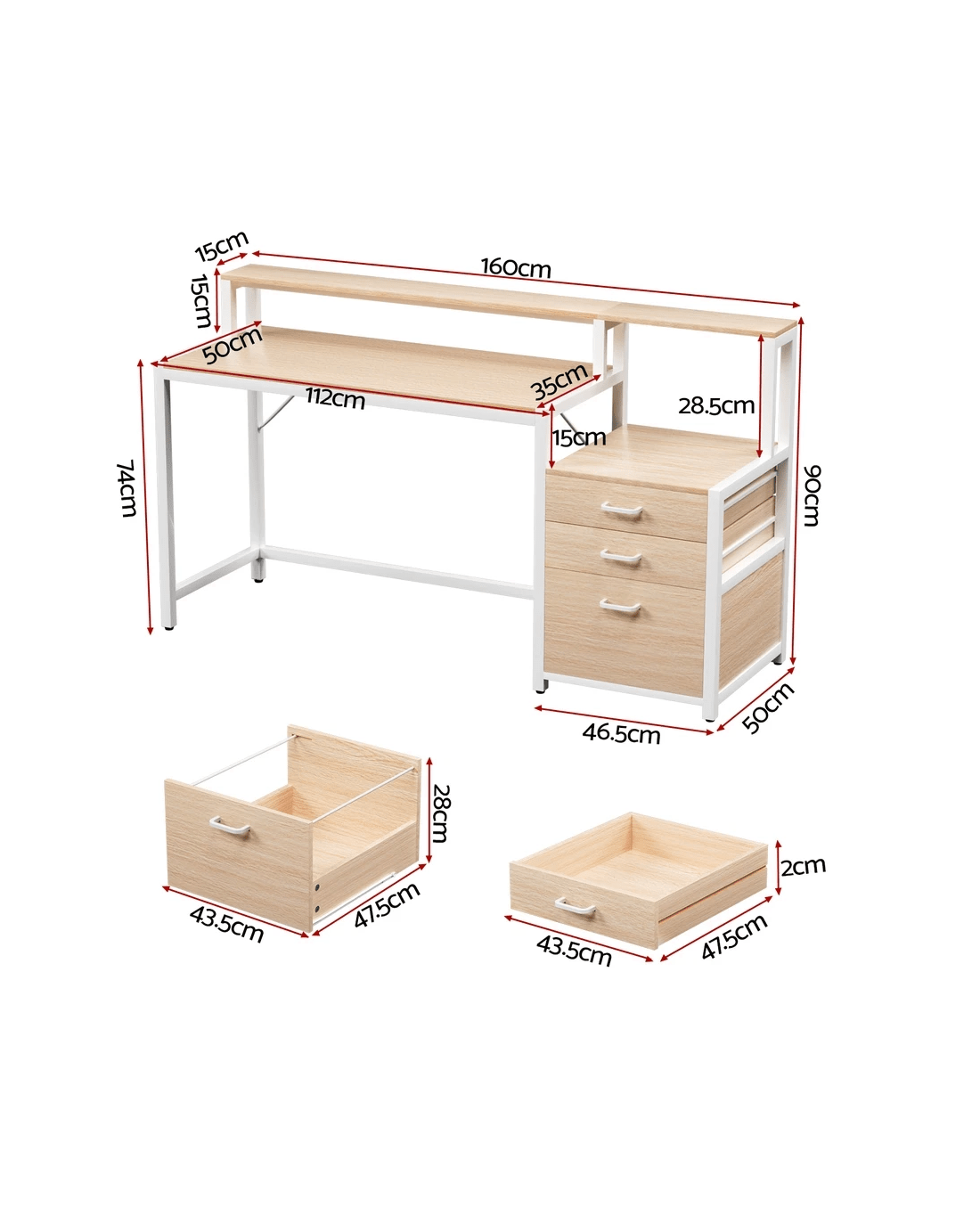 Sold by Aisle SixArtiss Computer Desk Home Office Study Table Desks w/Drawers Open Shelf Oak 160CM - Brown