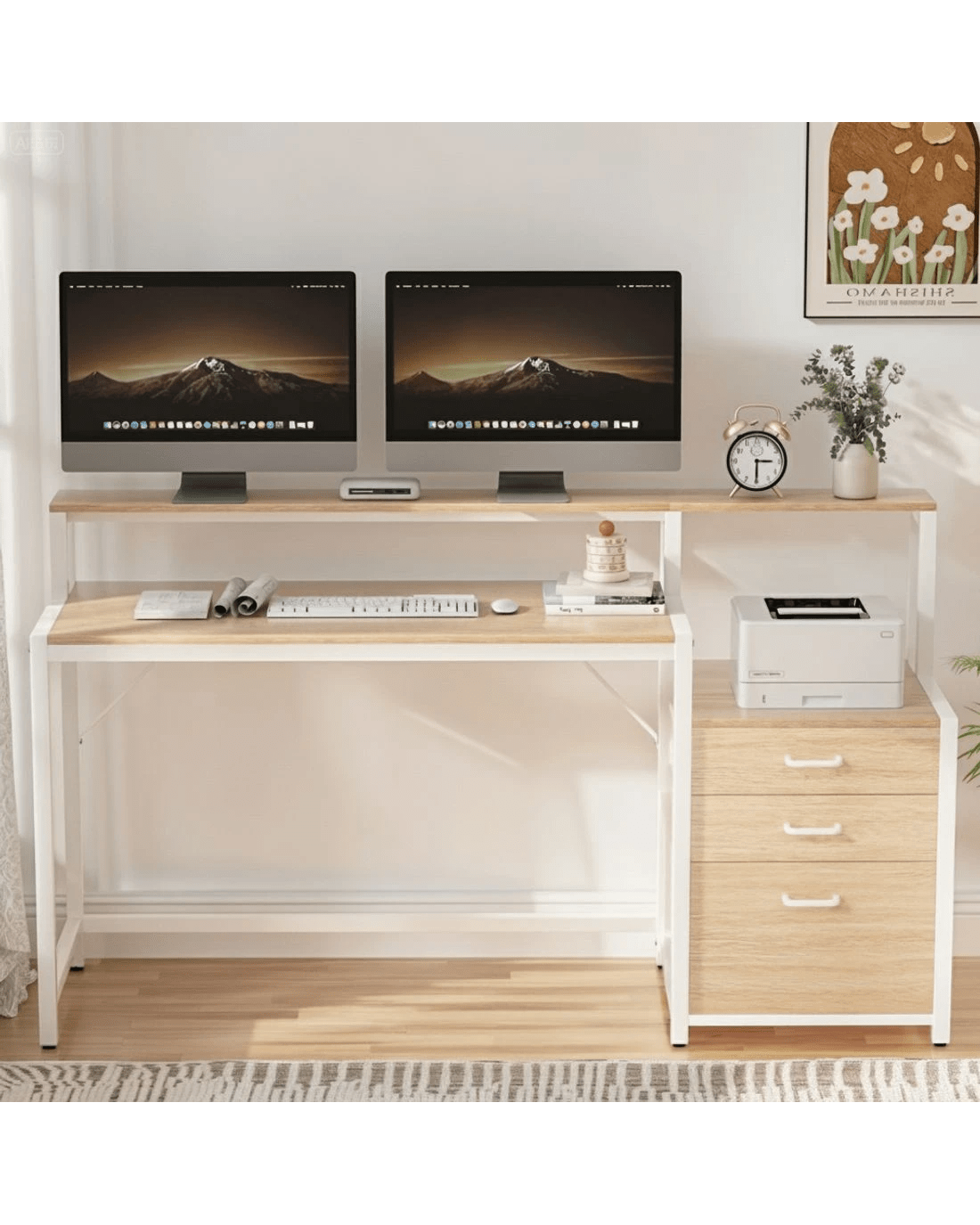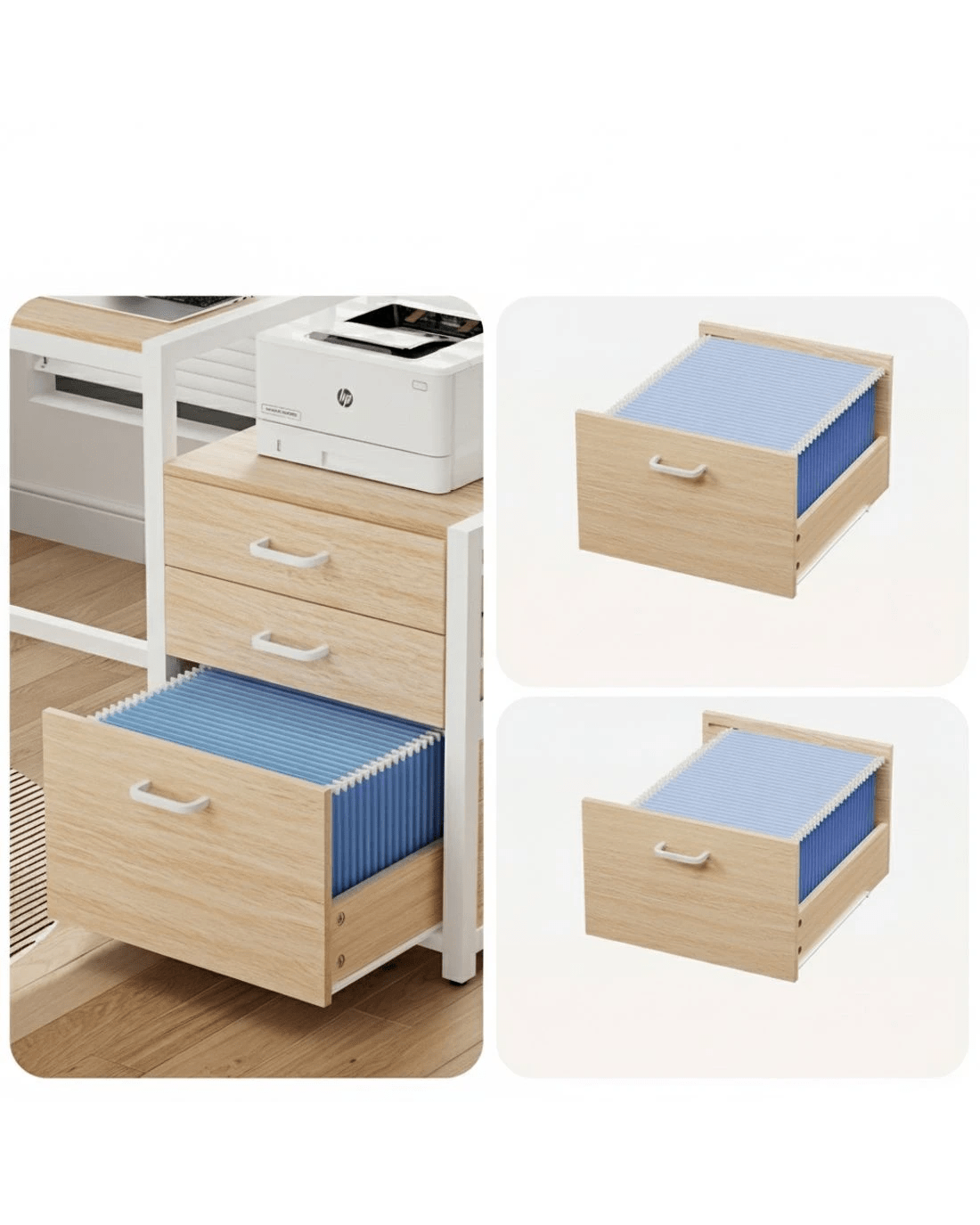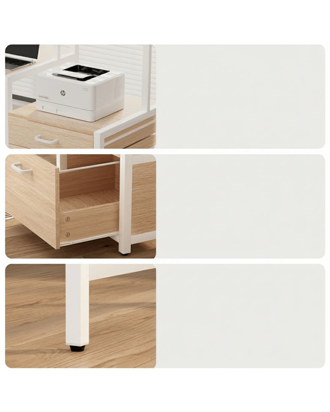 Stay organized with spacious drawers featuring anti-rust runners and an adjustable file drawer that fits both legal-size and letter-size files. The adjustable anti-scratch foot pads keep your desk stable on any surface, while the dedicated printer space adds convenience.