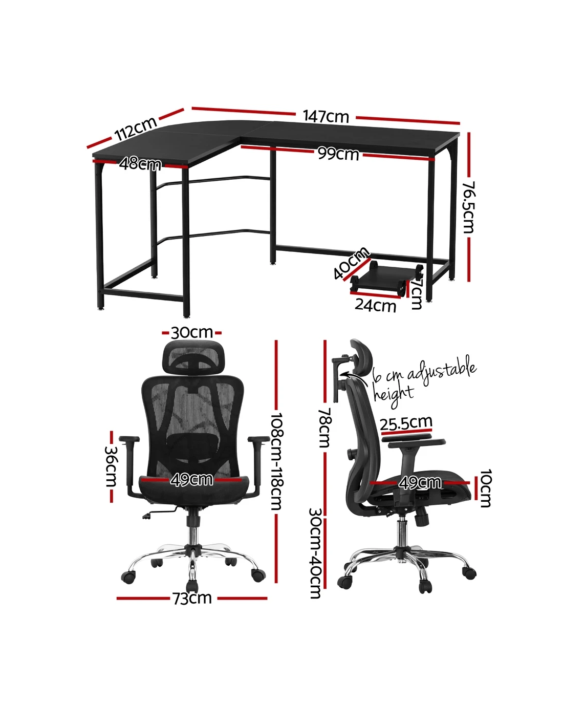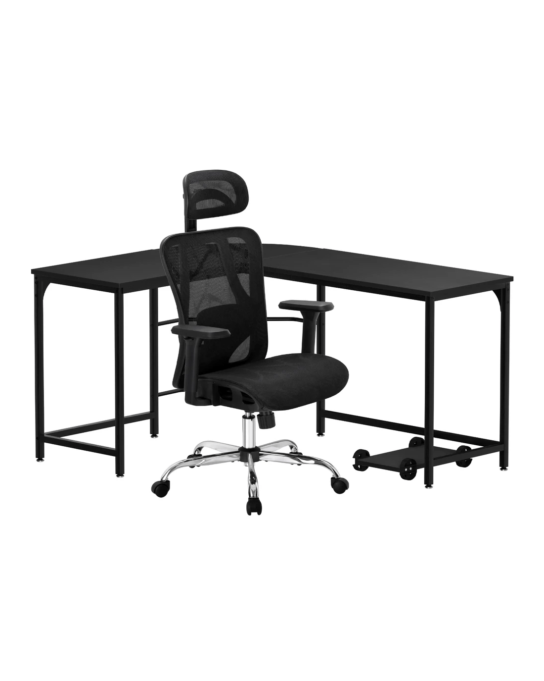 Sold by Aisle SixArtiss Computer Desk L-Shape Corner Desks Ergonomic Office Chair Mesh Chairs - Black