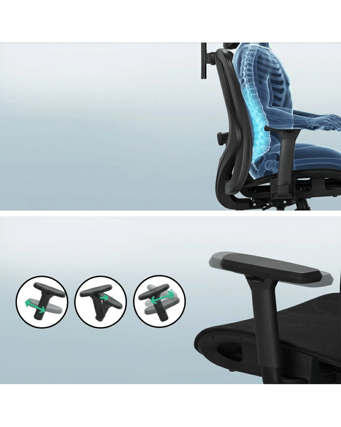 Paired with the desk is an ergonomic office chair. Designed to provide optimal comfort and support throughout your workday, our chair is the perfect addition to any office environment. The high back supports your spine and encourages good posture while you relax. The mesh material is incredibly breathable, keeping you cool and comfortable throughout the day. With an adjustable headrest and 3D multi-function PP armrests, you can customize the chair to fit your specific needs. The 10cm height adjustment ensures that you can find the perfect seating position, while the tilt tension allows for smooth reclining from 90 to 135 degrees. The chair is also 360 degrees rotatable, allowing for easy movement and access to different areas of your workspace. The chrome base adds a sleek and modern touch, while the black PU castors provide smooth and quiet mobility.