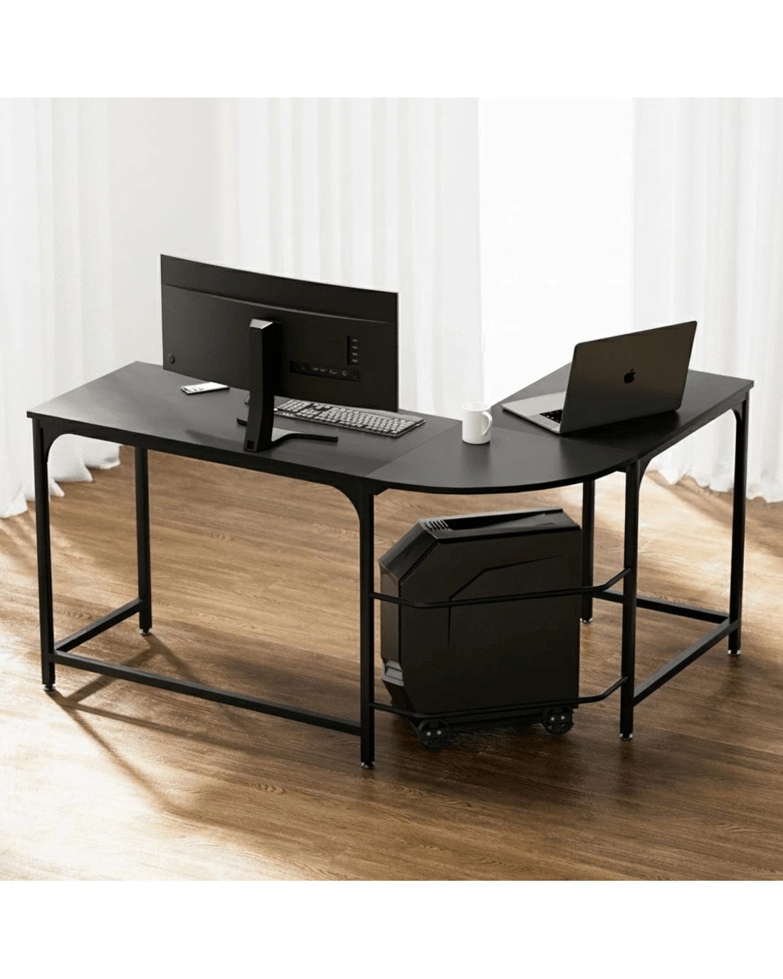 Upgrade your workspace with the Artiss Computer Desk and Office Chair Combo, a stylish and practical solution for your home office or study. The compact desk is meticulously crafted with a thick particle board and solid powder-coated steel frame to ensure long-lasting and robust use. With an L-shaped design, the desk allows you to have your attention to everything in one glance and fits in corners. It has ample storage space with a wide desktop to accommodate your table lamp, pen stand, and other knick-knacks. The desk also features safe and smooth edges to prevent accidental injury, anti-slip base, built-in floor protectors, convenient and practical design and is equipped with a bonus CPU stand.