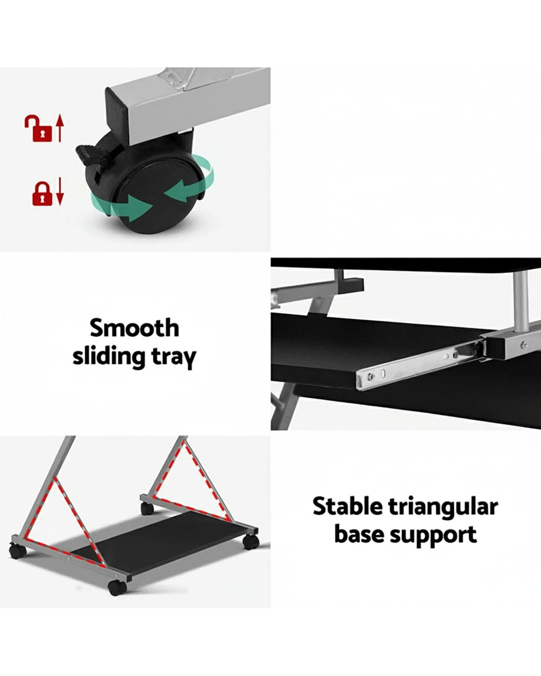 The computer desk with its spacious 15mm thick tabletop, the Optima Computer Desk allows you to set your computer or LCD monitor down with ease and still leave room for other work paraphernalia. Slide out the tray beneath and you have additional space for a keyboard to use and put away when done. Closer to the ground, a handy bottom shelf lets you place your CPU and printer conveniently so that the entire ensemble is one single unit. Better still, the swiveling castor wheels make it easy to bring the entire workstation to another location.