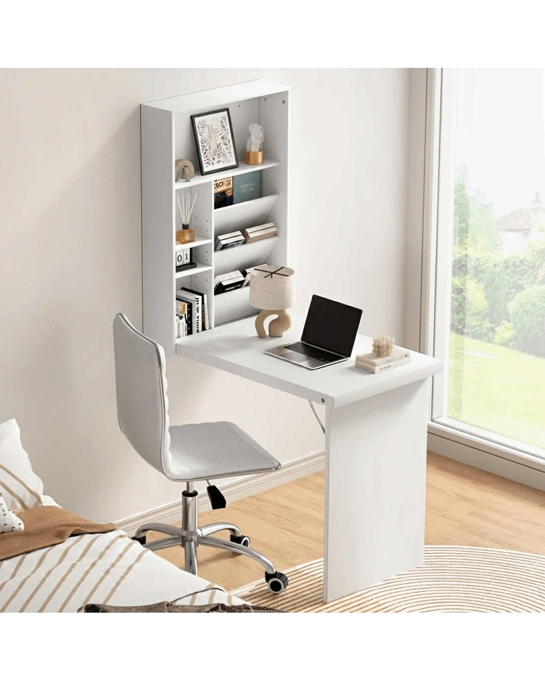 Upgrade your workspace with the Artiss Computer Desk and Office Chair Combo, a stylish and practical solution for your home office or study. The foldable computer desk is the perfect choice for your home office, study or anywhere where a work desk is needed. It comes with a modern 2-in-1 design, incorporating a desk with a wall-mounted bookcase that provides ample storage space for books and stationery essentials. What's more, it can be kept away easily with a handy fold away to make room for more movement within a limited space.
