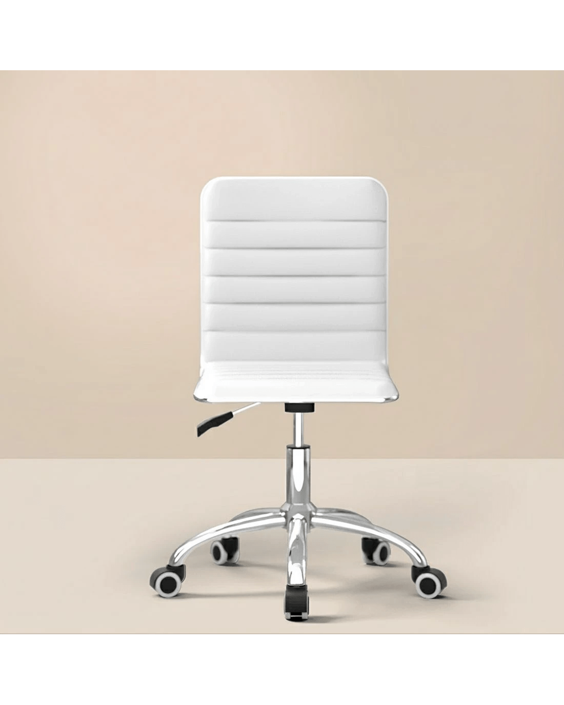Paired with the desk is an office chair with its faux leather upholstery is waterproof and offers sophistication and class. The seat is rotatable 360 degrees to face any direction with ease, while the soft padded seat keeps you comfortable for longer. It is height adjustable with a low-back design to allow you to be seated in your most comfortable position and posture. The hard metal base has five castor wheels for ease of movement.