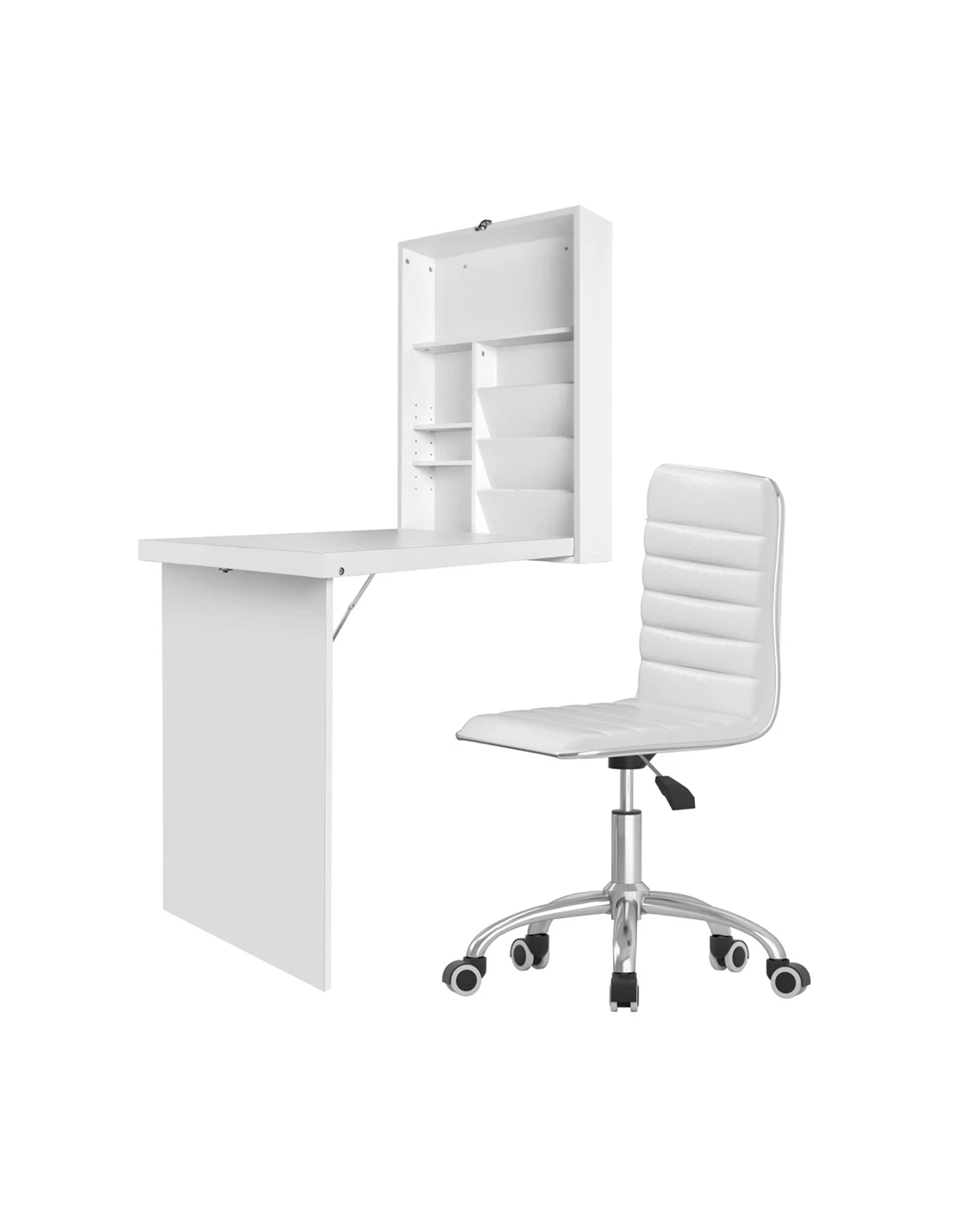Sold by Aisle SixArtiss Computer Desk Office Chair Set PU Leather Wall Mount Foldable Table - White