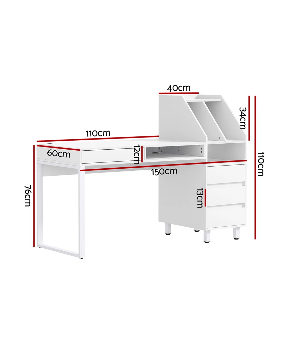 The Artiss Computer Desk is a stylish and functional addition to your workspace. The desk is made from particle board with a melamine finish atop a metal base, ensuring durability and a sleek look. With its wide desktop, you'll have plenty of room to spread out and work comfortably. The desk also offers convenient storage options including multiple open shelves and 4 sliding drawers. The anti-rust metal runners and concealed handles add a touch of sophistication, while the safe and smooth edges provide peace of mind. With its easy-to-follow instructions, assembly will be a breeze and you'll have your new desk set up in no time. Upgrade your office with the Artiss Computer Desk today.