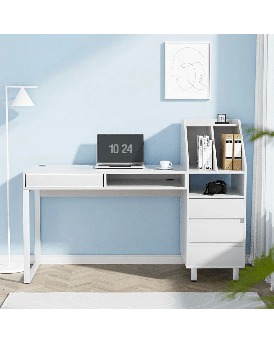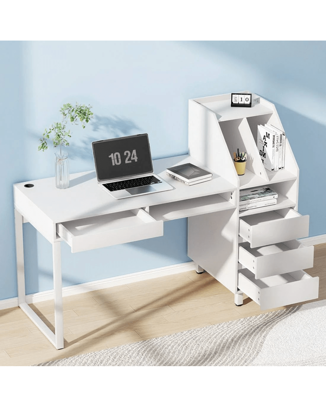 Sold by Aisle SixArtiss Computer Desk Office Study Desks Table Drawer Bookshelf - White