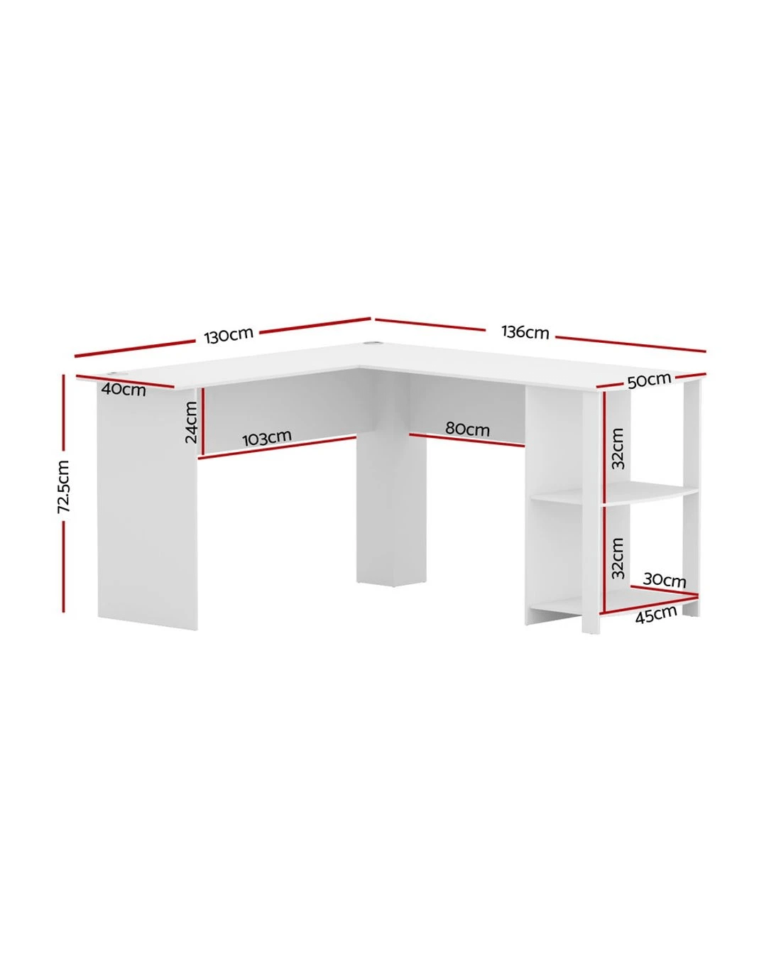 Sold by Aisle SixArtiss Computer Desk Shelf L-Shape 136CM - White
