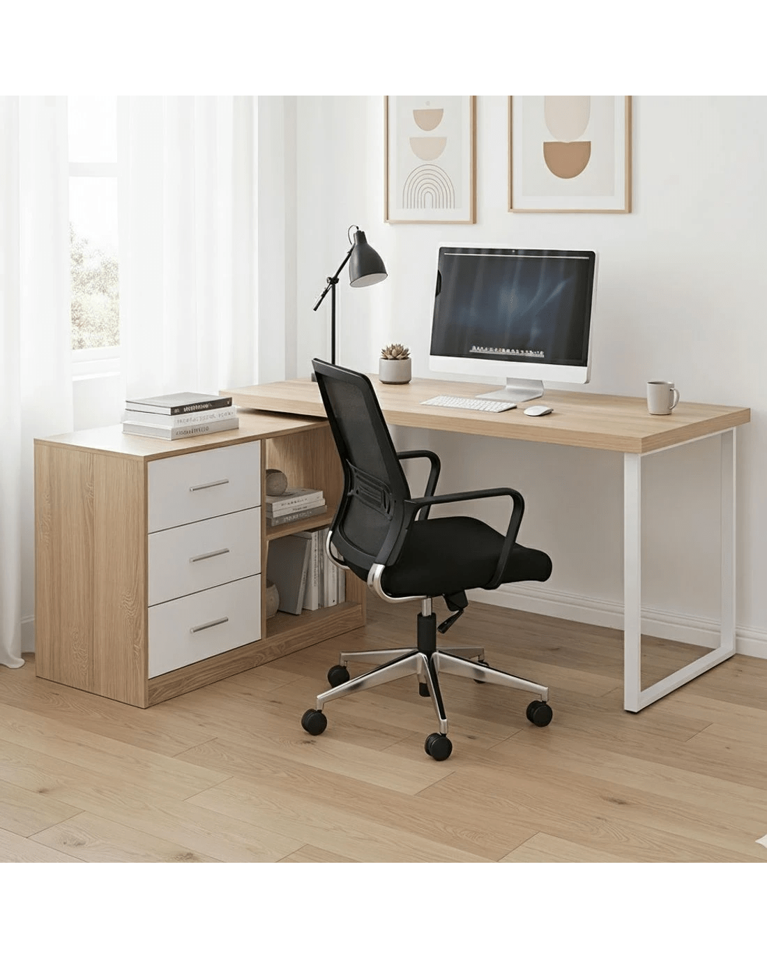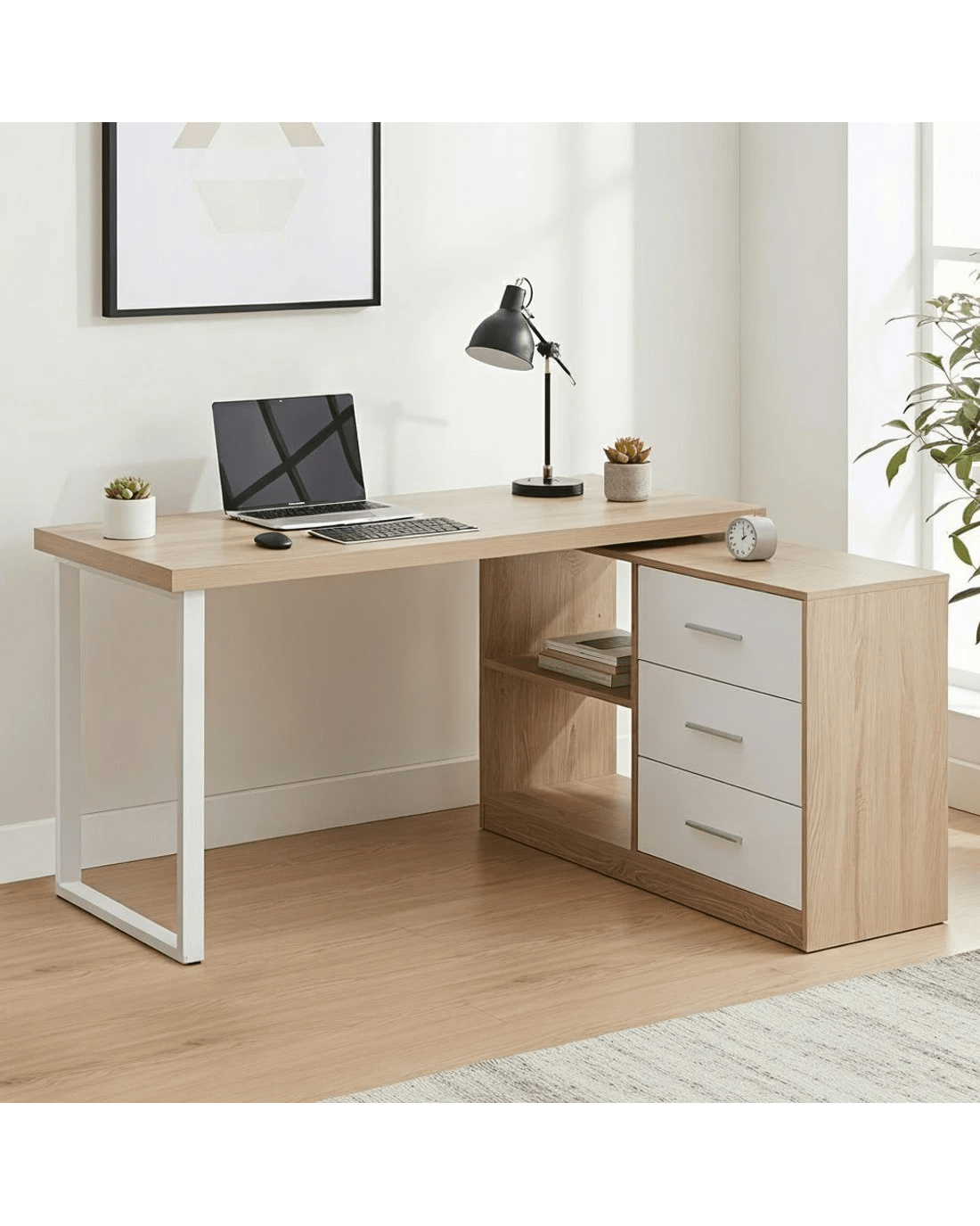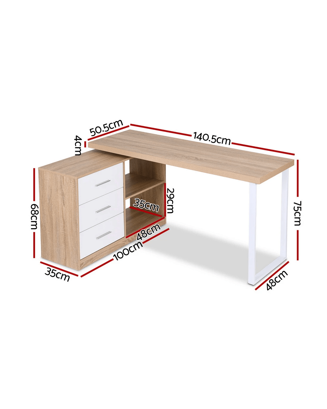 Artiss Computer Desk Swivelling L shape Home Office Storage Cabinet - Multi