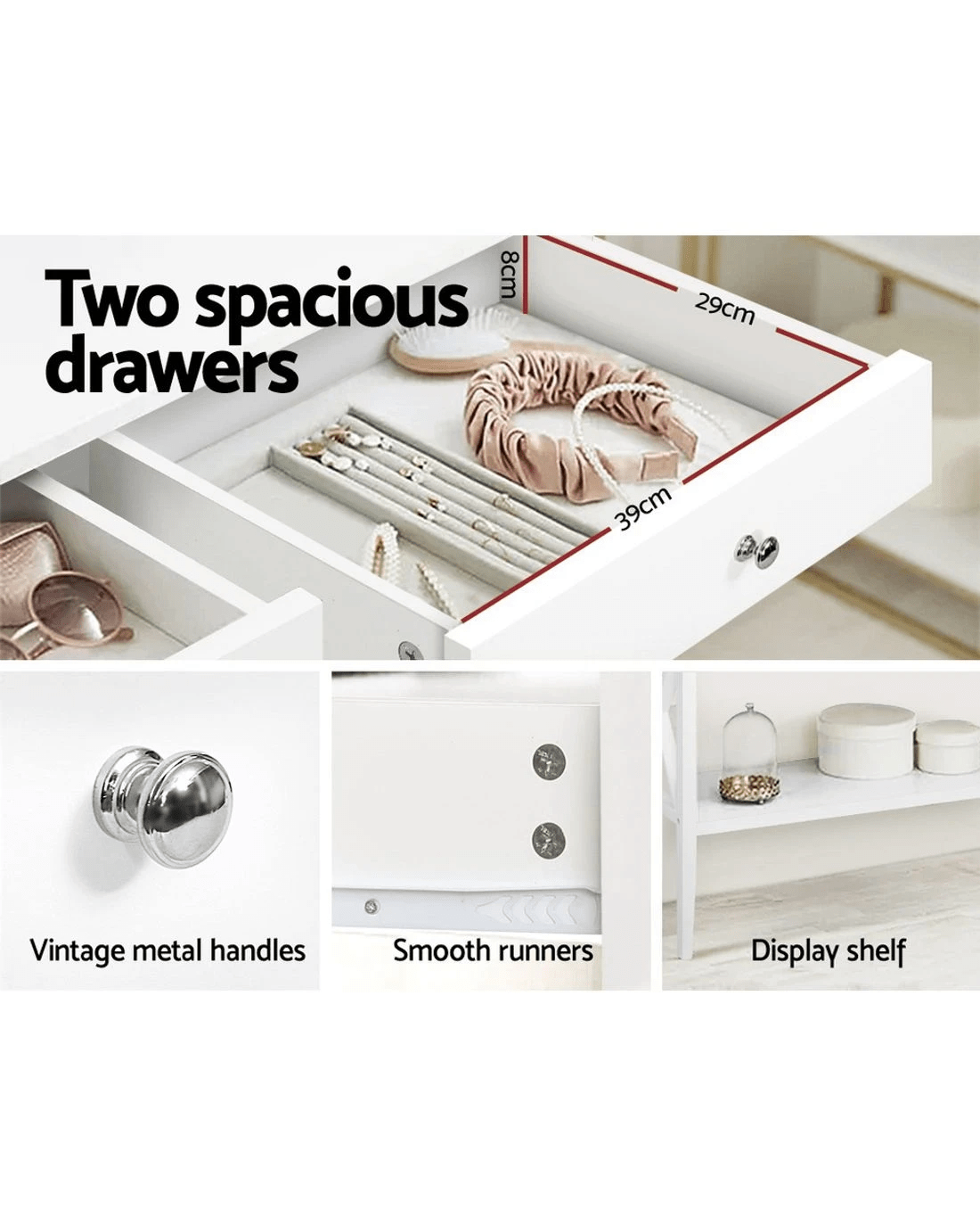 Two generous-sized drawers
