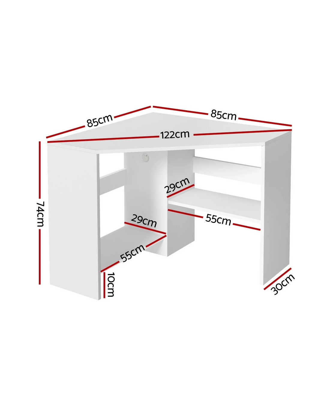 Crafted from durable MDF in a clean white finish, this desk offers a surprising amount of functionality. It features convenient open storage shelves for your books and essentials, a dedicated CPU stand to keep your tower off the floor, and a practical cable management hole to maintain a tidy and clutter-free workspace. The robust design includes stable legs to ensure a solid and shake-free surface for work or study.
