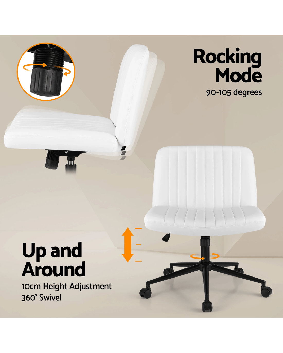 Artiss Criss Cross Chair with Wheels Wide Cross Legged Office Desk Vanity Chair - White