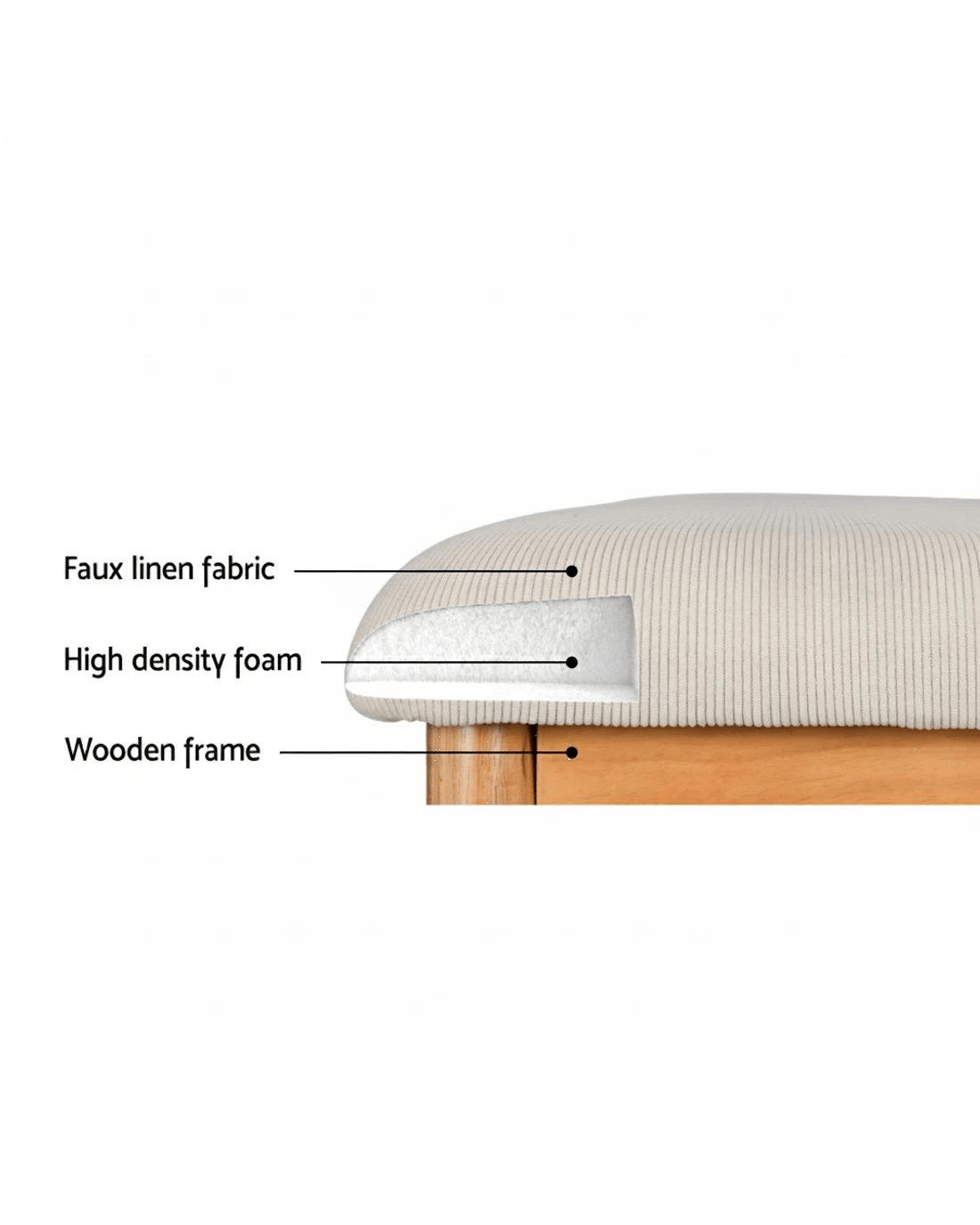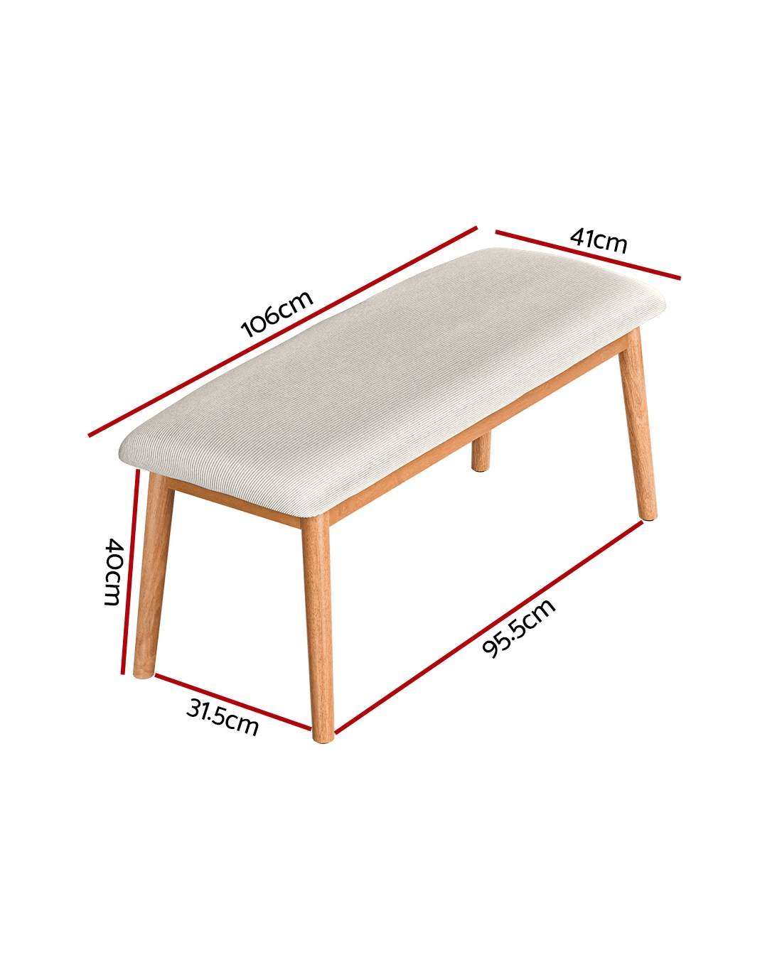 If you are looking for a simple wooden dining bench, our Artiss Nina Dining Bench is what you are after. The dining bench has a beautiful natural wood grain finish and will blend in perfectly with your décor. Made from solid rubberwood, high-density foam and premium upholstery, the bench is sturdy, solid and comfortable. With a 300kg weight capacity, you can sit multiple adults and children on a single bench. The seat cushion is made of faux linen fabric and filled with thick high-density foam so that you can dine and talk for as long as you please. Not least, the entire bench is further reinforced with heavy-duty steel fixings and an anti-slip base, giving you a bench that will last for years to come.