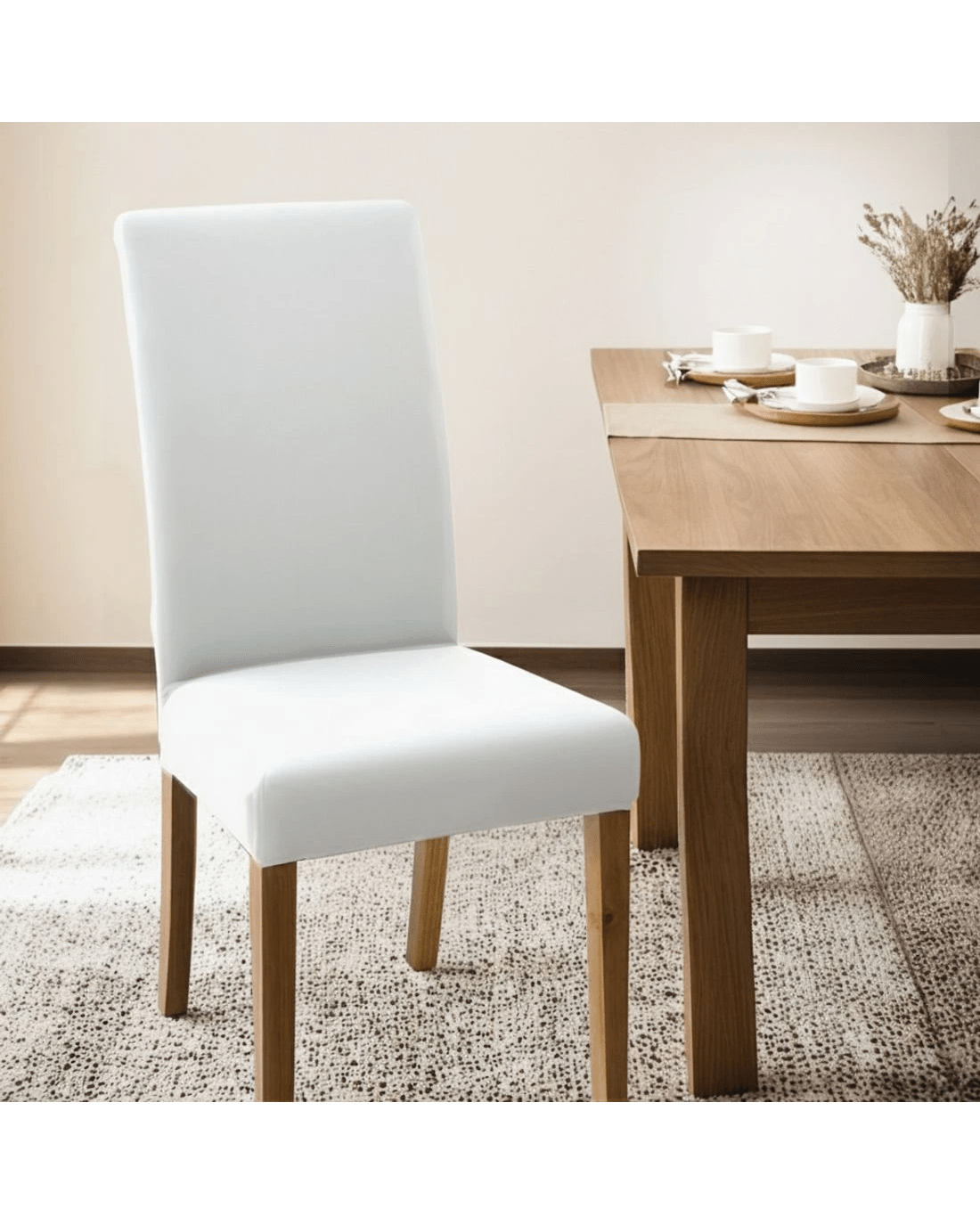 The Artiss dining chair cover is the perfect solution for those looking to refresh and protect their dining room chairs. The stretchable and removable cover makes it easy to install and remove, ensuring a secure fit that won't slip or slide off. The smooth and comfortable fabric provides a layer of cushioning, while also protecting the chair from spills and stains. It's easy to wash, making it a practical and cost-effective choice for high-frequency use. And with its suitable size for most regular chairs, it's ideal for use in a variety of settings, from homes to hotels, restaurants, wedding banquets, and parties.