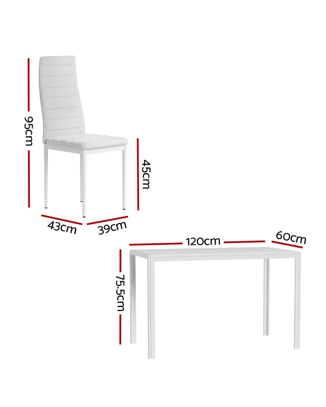 Chair overall dimensions: 39cm x 43cm x 95cm