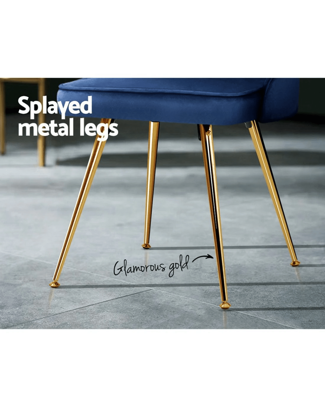 Iconic design. Timeless appeal. Our Artiss Dining Chair is the epitome of trendsetting style designed for the bold and passionate. With its thick padding of high resilience foam and velvet fabric upholstery, the Dining Chair is perfect as a reading chair or a favourite relaxation seat. The vintage-style scallop shell back wraps around and hugs your body to provide perfect support and comfort. The splayed metal legs in glamorous gold give the Dining Chair loads of character as well as providing a very stable base. Not least, the workmanship is meticulous with the fluid corners and sturdy wooden frame. The Dining Chair will blend well with any setting from classic to contemporary and will also soften the flow of rooms with angular furniture and accents.