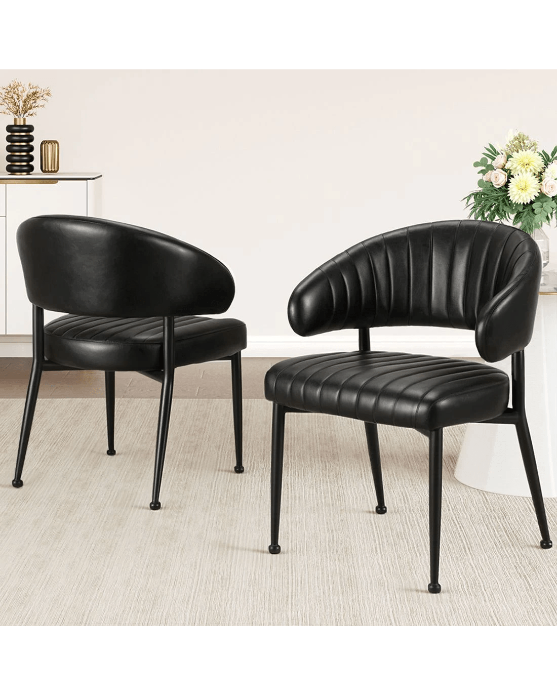 Sold by Aisle SixArtiss Dining Chairs Set of 2 Leather Hollow Armchair - Black