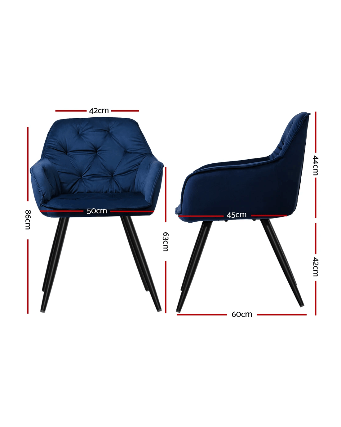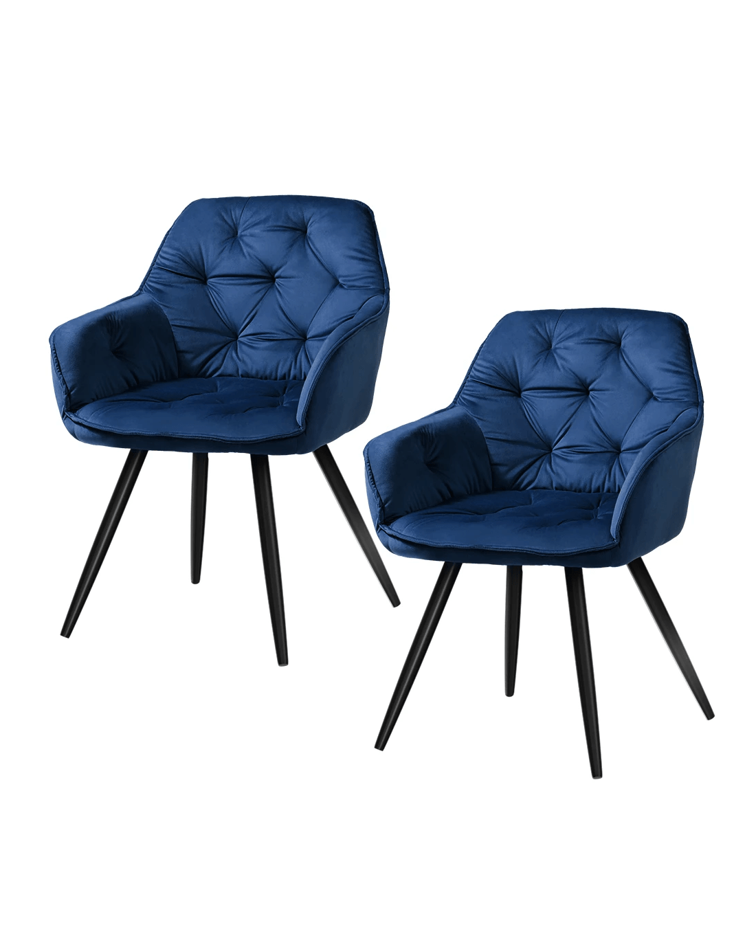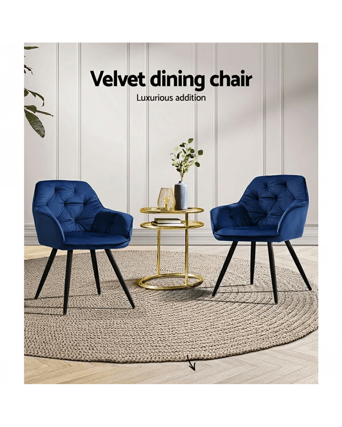 Wine, dine, and entertain guests with our meticulously designed Artiss dining chairs. They make a luxurious addition to any dining space and will make your guests envious of your gorgeous dining ambience. Not just for your dining room, these dining chairs are sure to make a statement in your study room, living room, and dressing room. Their versatility and ultra-modern design make them stand out. Incredibly stylish and sophisticated, our Artiss dining chairs feature inner solid wood construction with plush velvet upholstery that ensures lasting quality. It comes with solid steel legs with an anti-slip feet pad for ultimate stability and keeping your floors scratch-free. The dining chairs flaunt plush seats made with high-resilience foam that offer incredible comfort and support, and the cushioned back support with comfortable armrests allow you to dine with great comfort. Our dining chairs can hold up to 150kg weight, and their reinforced steel fixings make them super stable and reliable. Our Artiss dining chairs are certainly a big bang for your buck. Bring home this luxurious set of dining chairs without any hesitation.This product comes with one year warranty.