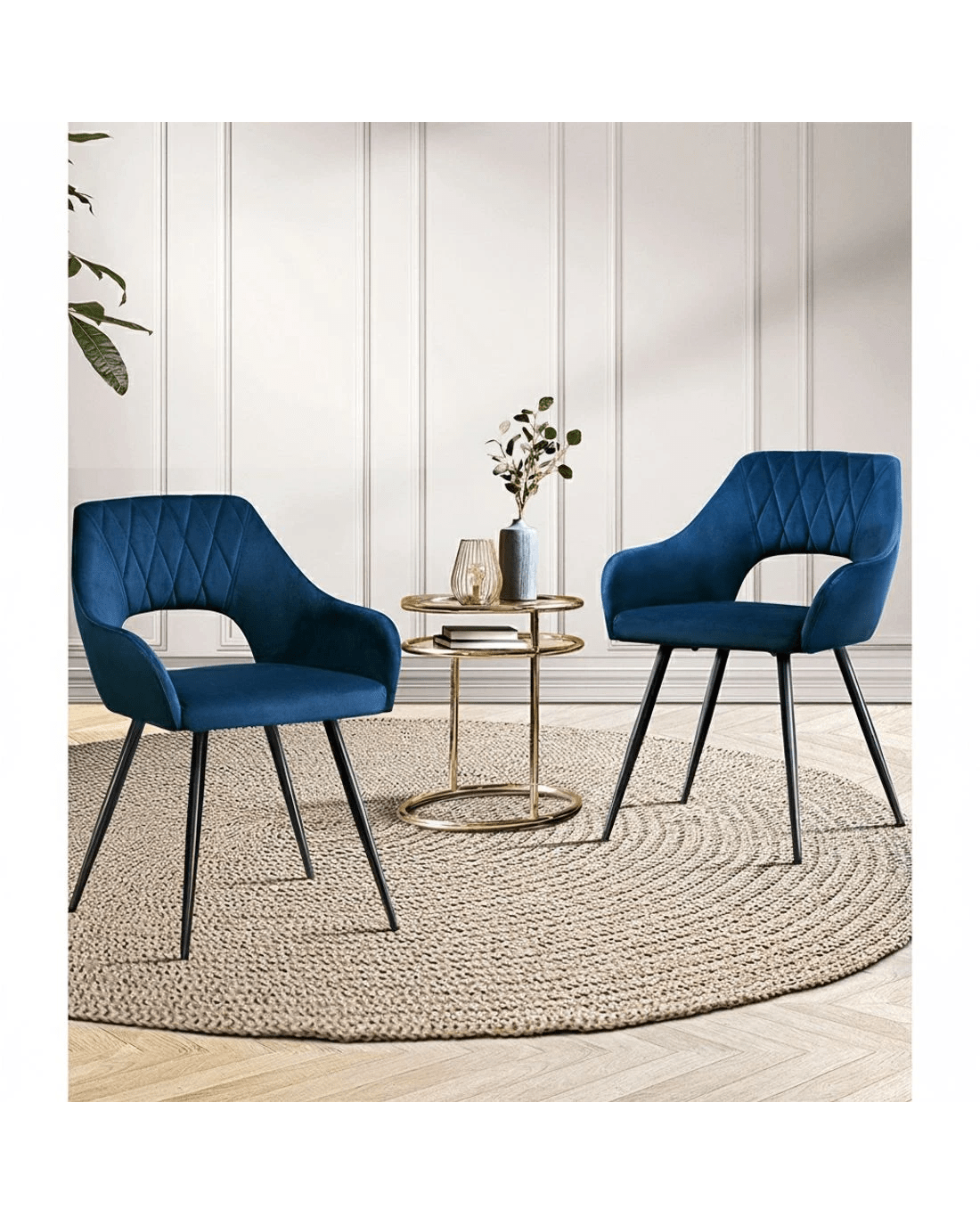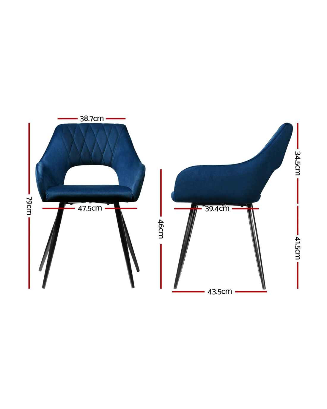 Artiss Dining Chairs Set of 2 Velvet Hollow Armchair - Blue
