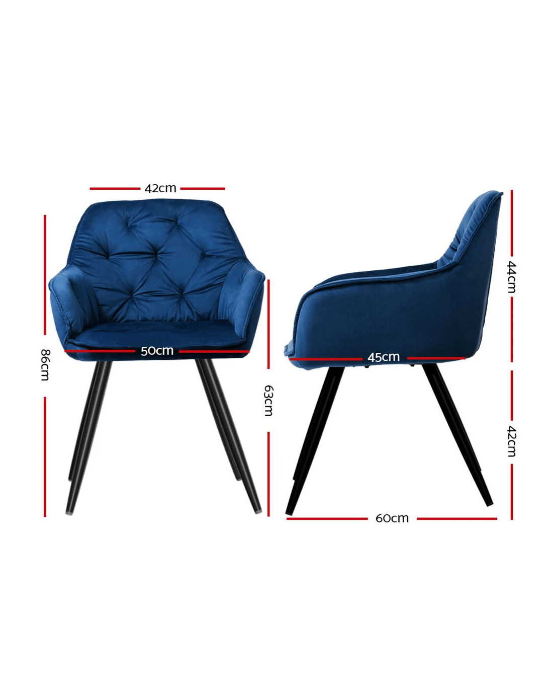Wine, dine, and entertain guests with our meticulously designed Artiss dining chairs. They make a luxurious addition to any dining space and will make your guests envious of your gorgeous dining ambience. Not just for your dining room, these dining chairs are sure to make a statement in your study room, living room, and dressing room. Their versatility and ultra-modern design make them stand out. Incredibly stylish and sophisticated, our Artiss dining chairs feature inner solid wood construction with plush velvet upholstery that ensures lasting quality. It comes with solid steel legs with an anti-slip feet pad for ultimate stability and keeping your floors scratch-free. The dining chairs flaunt plush seats made with high-resilience foam that offer incredible comfort and support, and the cushioned back support with comfortable armrests allow you to dine with great comfort. Our dining chairs can hold up to 150kg weight, and their reinforced steel fixings make them super stable and reliable. Our Artiss dining chairs are certainly a big bang for your buck. Bring home this luxurious set of dining chairs without any hesitation.This product comes with one year warranty.