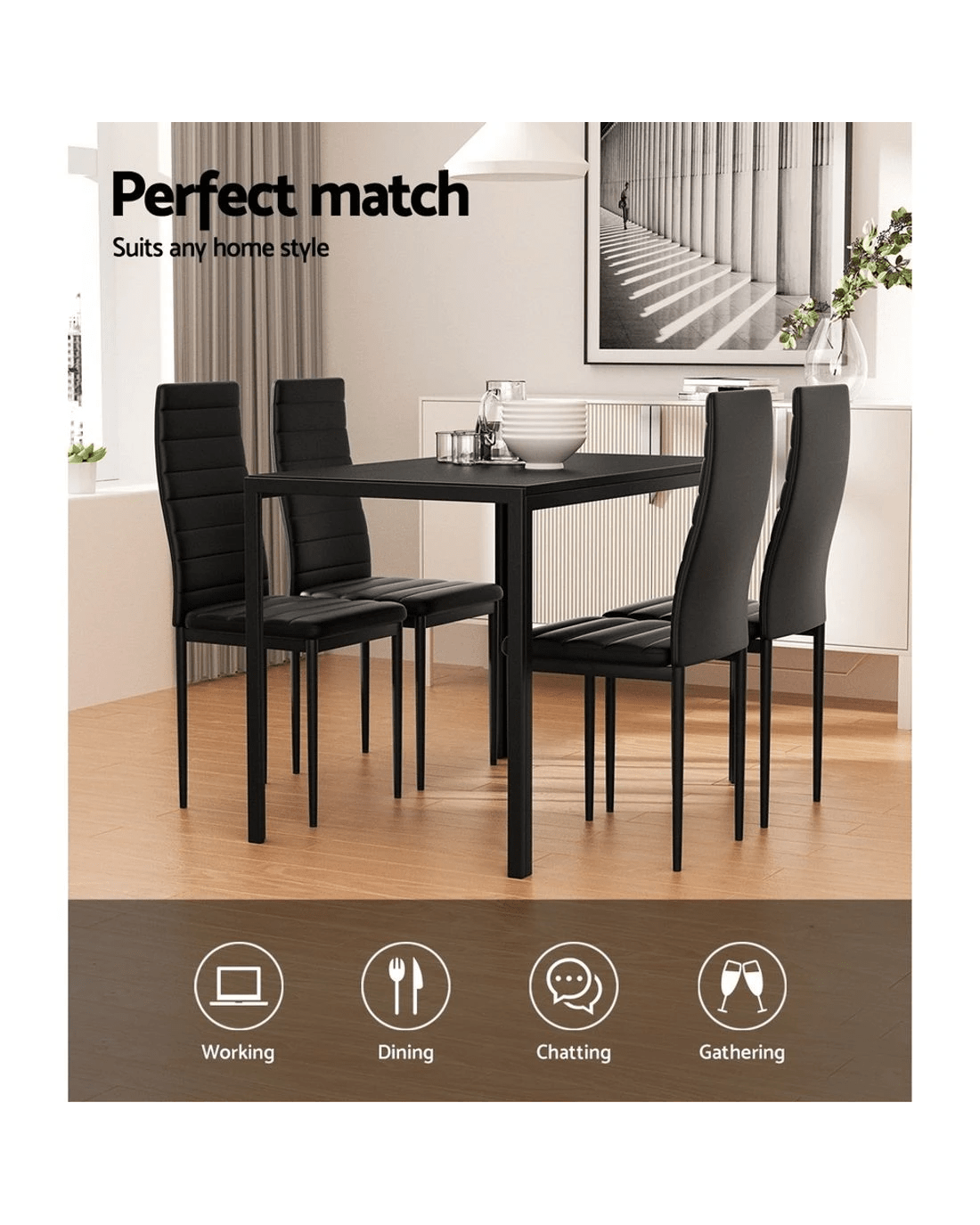 Are you after a dining set flaunting stylish and modern design and one that is versatile? You'll love our Artiss dining set. Made with the highest quality craftsmanship, our beautiful and modernistic Artiss dining set will effortlessly enrich your dining room décor and serve the purpose. Whatever style your home interior reflects, it will blend seamlessly in your space and match your preferred décor. Have a space concern? You can choose from our four-seater or six-seater dining set. Plus, the rectangular-shaped table is of the right size and perfect for your home. Our dining table features 18mm thick natural grain finish MDF top with powder-coated metal tube frame legs. And the dining chairs boast matt finish PVC seats with high resilient foam padding for comfort. It also has anti-slip floor protectors to prevent slipping or floor getting scratched. The dining set is water and wear resistant and comes with durable steel fixings and reinforced installation hardware accessories. This set is easy to maintain and assemble. Bring home our Artiss dining set. It makes an ultimate addition and adds a timeless appeal to your space.
