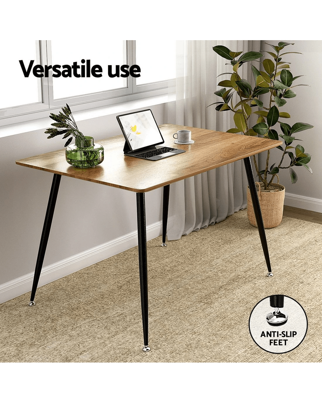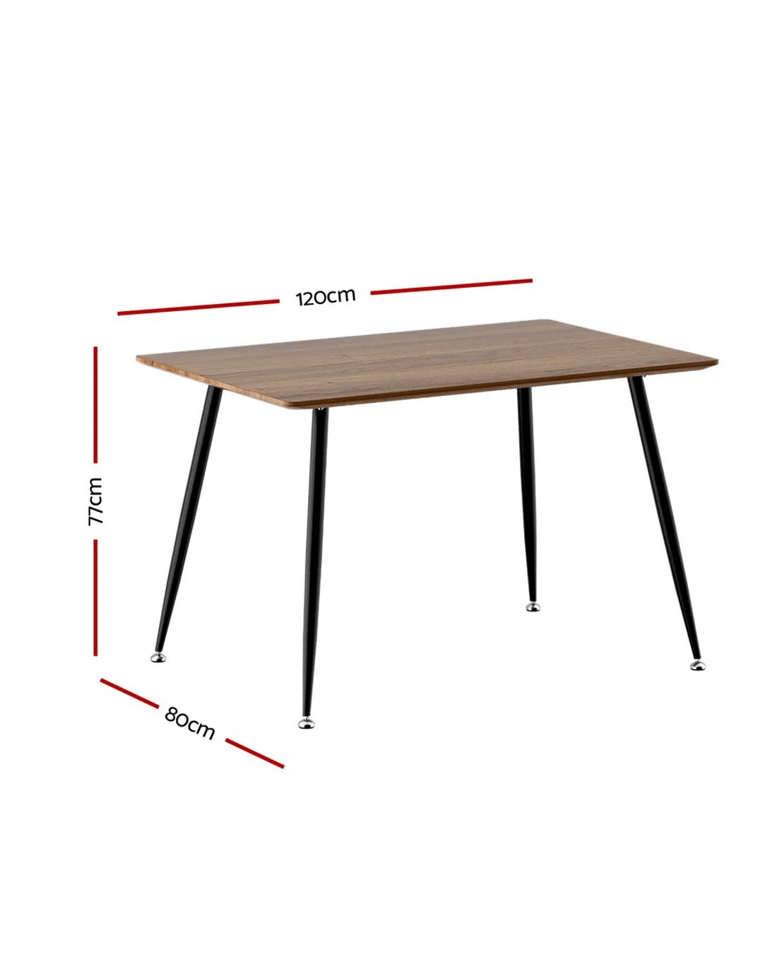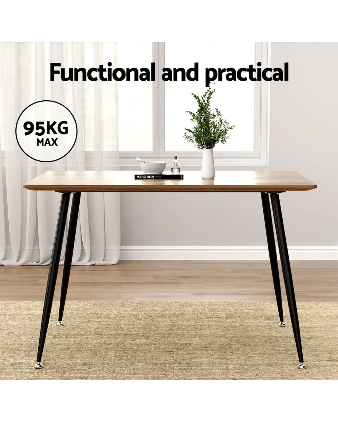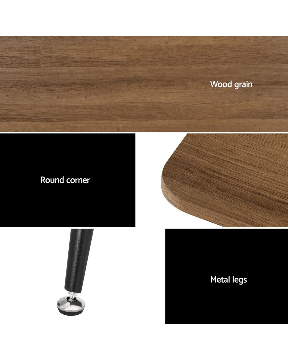For a simple dining table that still delivers on style, the Artiss Caleb Dining Table is right for you. Made from thick particle board with a natural wood grain finish, the table is exceptionally affordable, durable, and will blend in perfectly with your existing décor. The dark wood tabletop is set atop solid powder-coated, anti-rust steel legs for an industrial-style look and feel. The table is scratch resistant and easy to clean and maintain thanks to the smooth, long-lasting surface. The table has a max capacity of 95kg and can comfortably seat four to six people, so you can entertain well into the night for any holiday or special occasion. The entire table is further reinforced with heavy-duty fixings and anti-slip feet that will keep the dining table in place and prevent damage to floors. Luxury dining has never been easier thanks to the Artiss Caleb Dining Table.