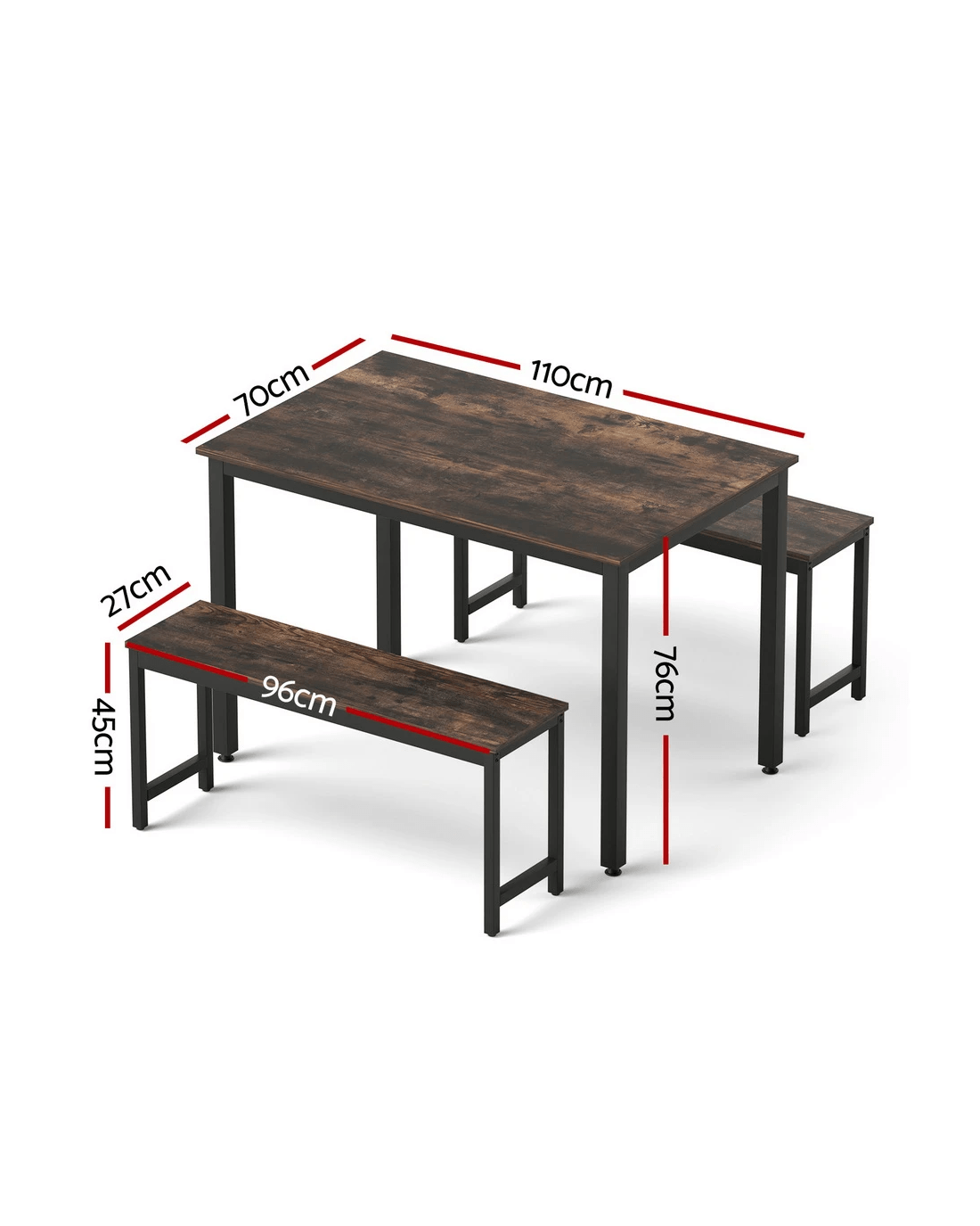 Designed with compact living in mind, it is the ultimate space-saving solution. The two benches slide completely underneath the table when not in use, instantly decluttering your room and maximizing floor space—perfect for apartments, studios, and breakfast nooks.