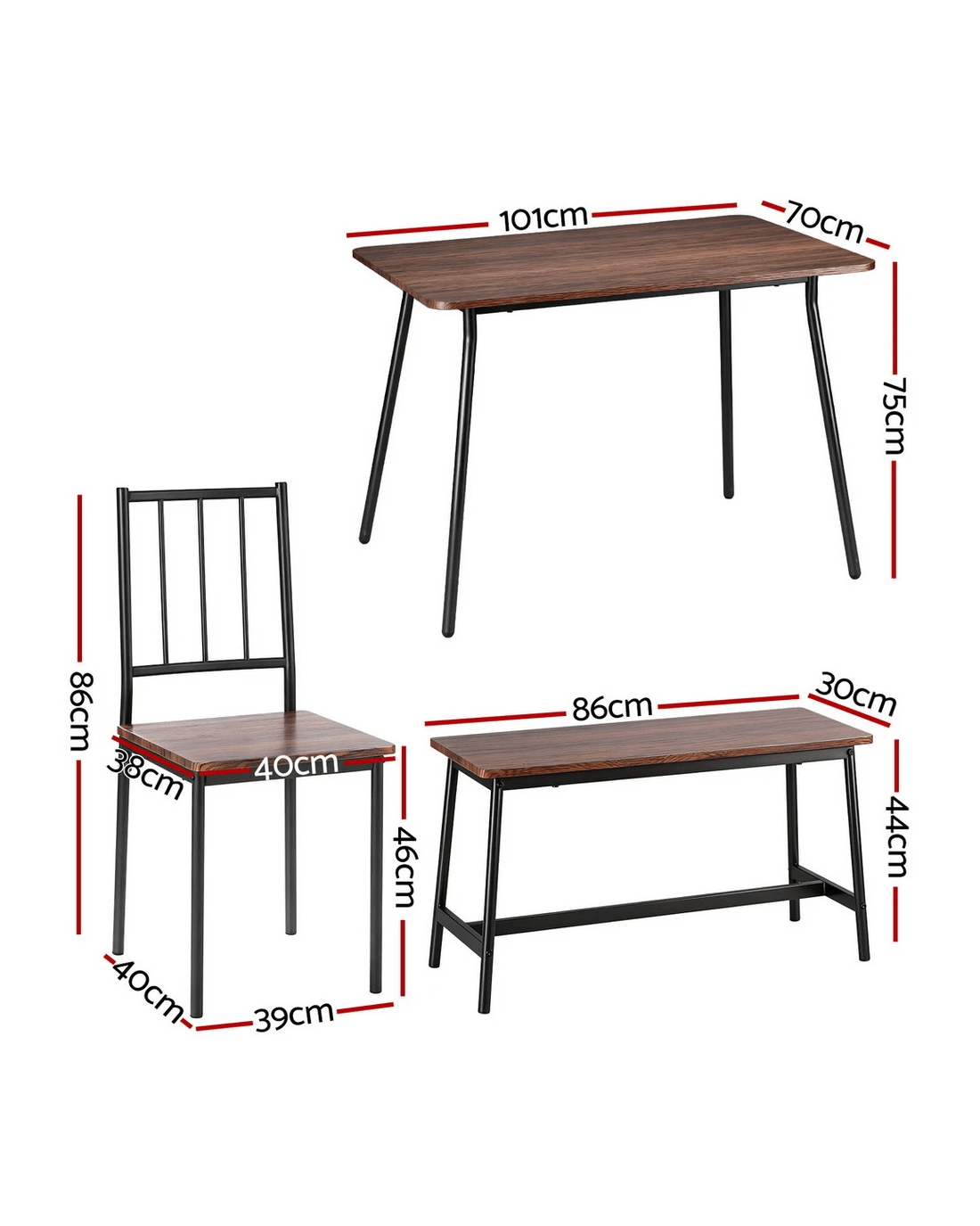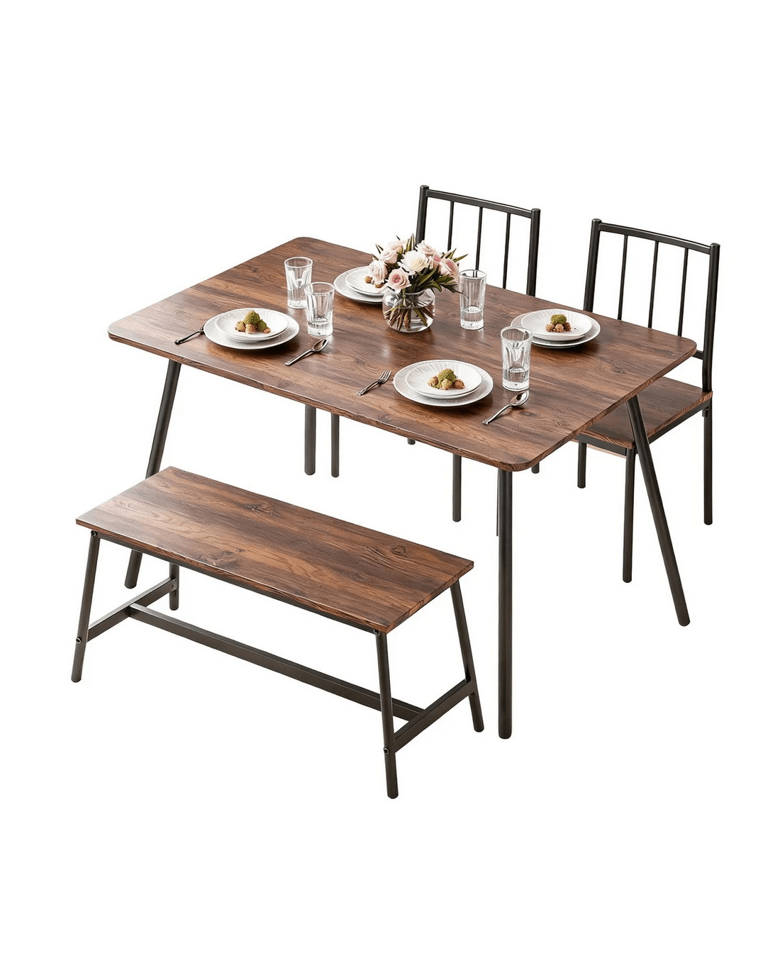 Artiss Dining Table and Chairs Set of 4 Bench Kitchen Furniture Rustic - Multi