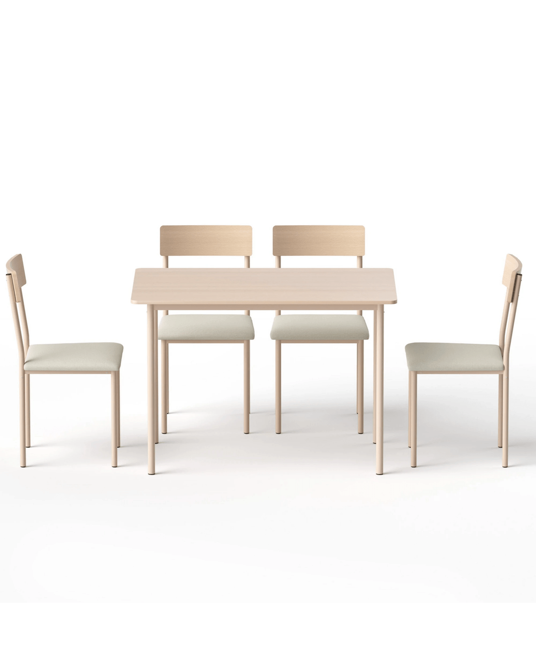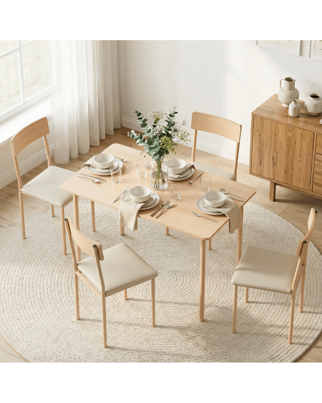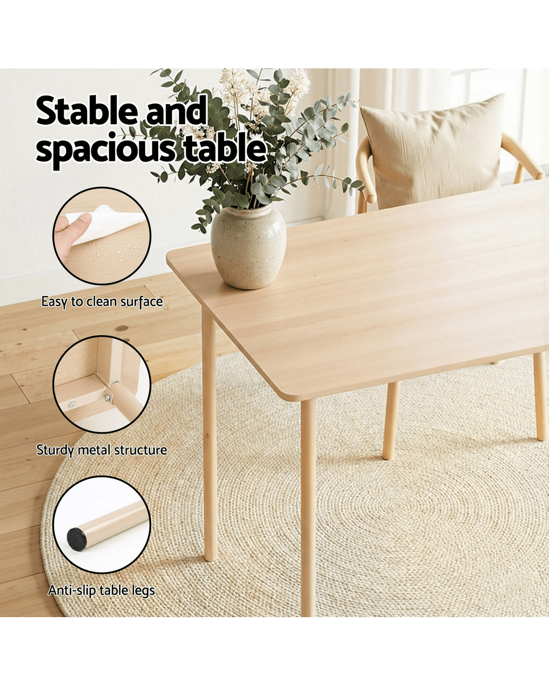 Infuse your home with Nordic charm using the Artiss 5-Piece Scandi Dining Set. Designed for the modern Australian lifestyle, this suite combines a clean, minimalist silhouette with intelligent engineering. While it boasts the lovely appearance of natural light oak, the frame is actually crafted from reinforced metal with a premium wood-grain finish. This means you get the sturdy, wobble-free performance of steel without sacrificing the cosy timber aesthetic. Complete with soft padded seats for extra comfort, this 110cm dining set is the perfect durable, stylish, and space-saving solution for your daily meals.