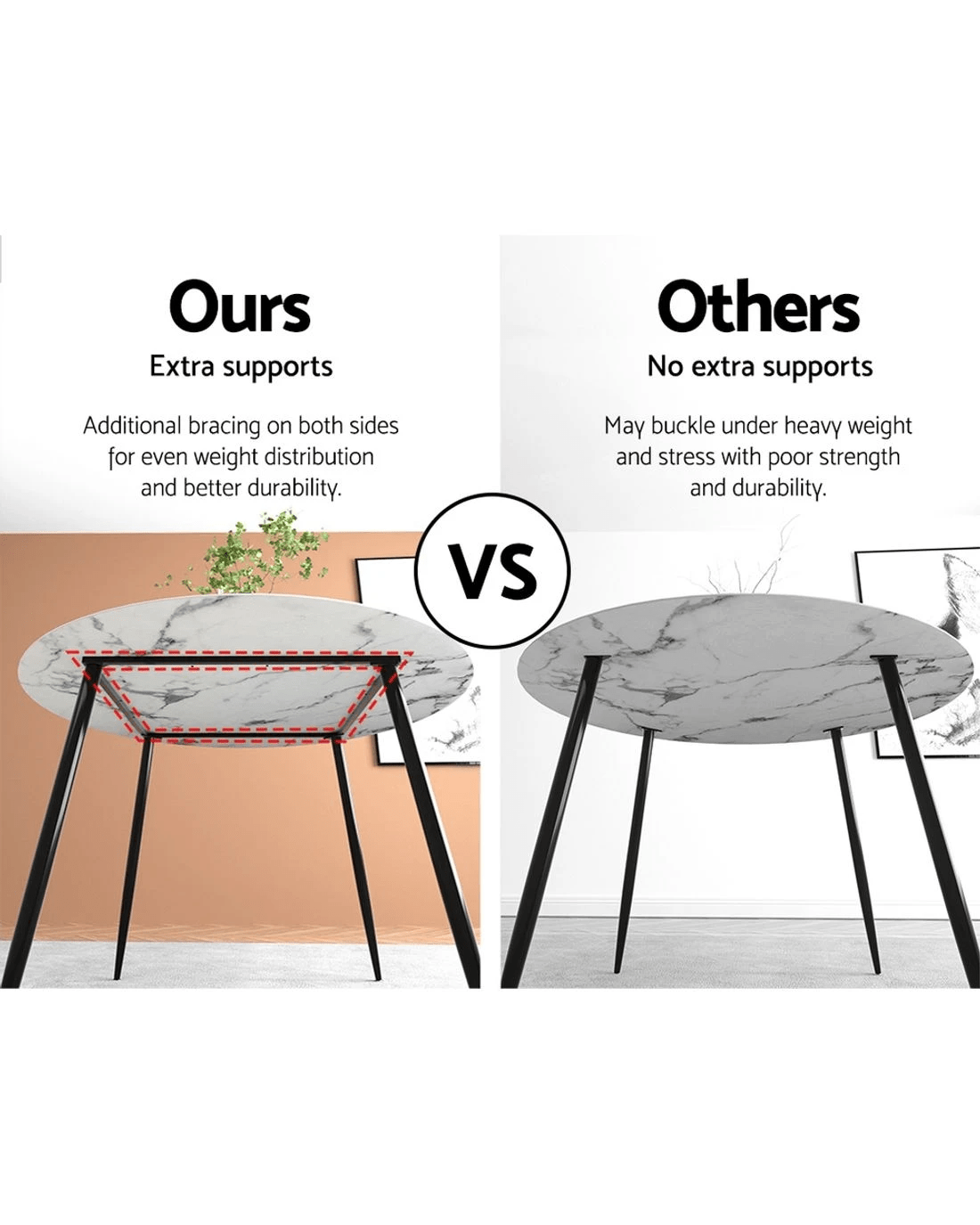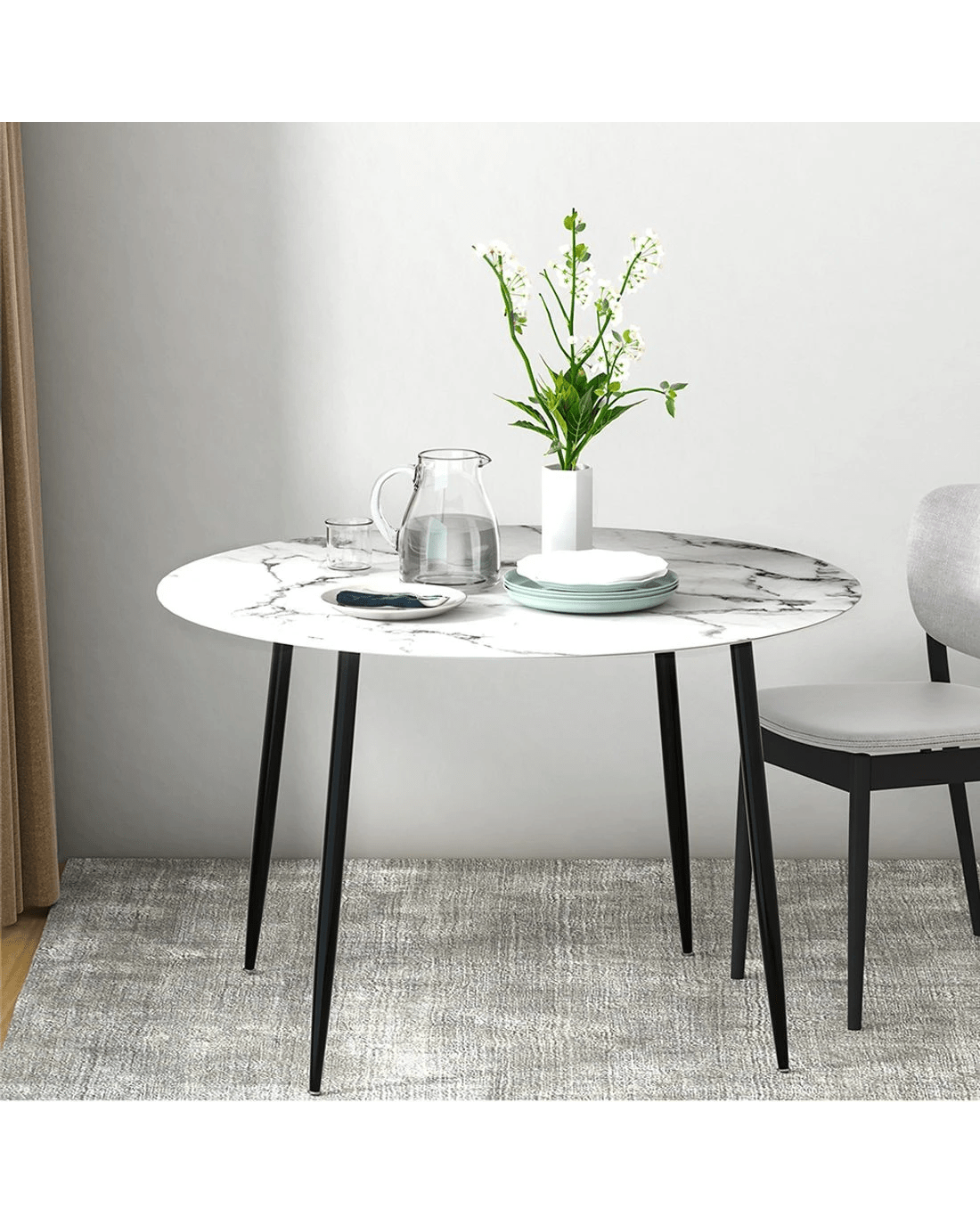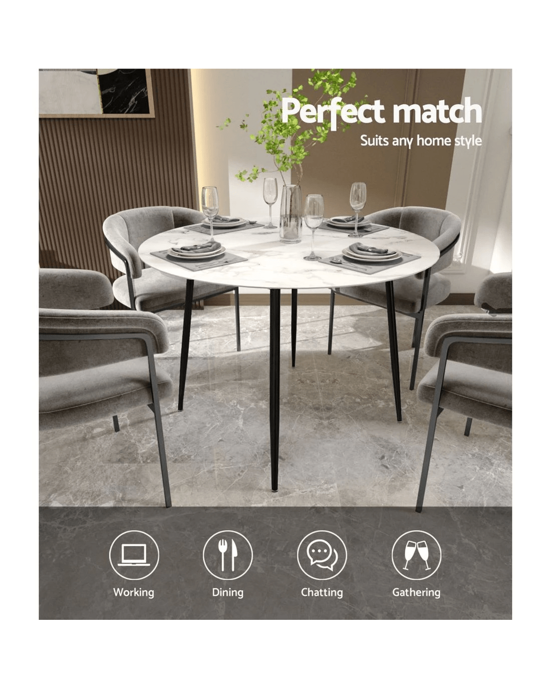 Everyone needs a dining table, and there's no dining table like an Artiss Marble Dining table. The table is an affordable alternative to real marble, made from particle board with a marble finish and sturdy metal legs without sacrificing elegance. Simple and modern, the table instantly makes a statement in your dining room with its minimalist appeal and sleek, sophisticated appearance. The round table features smooth edges for safety while the anti-rust, powder-coated steel legs are sturdy and durable with a weight capacity of up to 90kg. With its practical, industrial-style aesthetic, the dining table will suit most home and décor types and provides plenty of room for a family of four, whether it's dinner time, book club or board game night. For a sleek and luxurious new dining table without the premium price tag, look no further than the Artiss Marble Dining Table