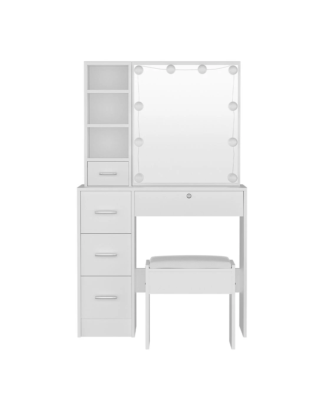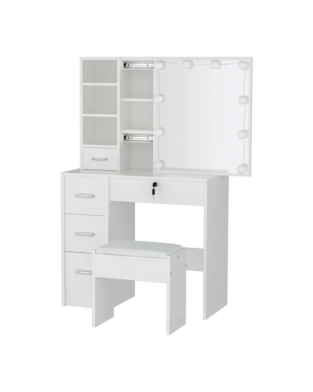 Sold by Aisle SixArtiss Dressing Table Set Stool 10 Led Bulbs Dylan - White