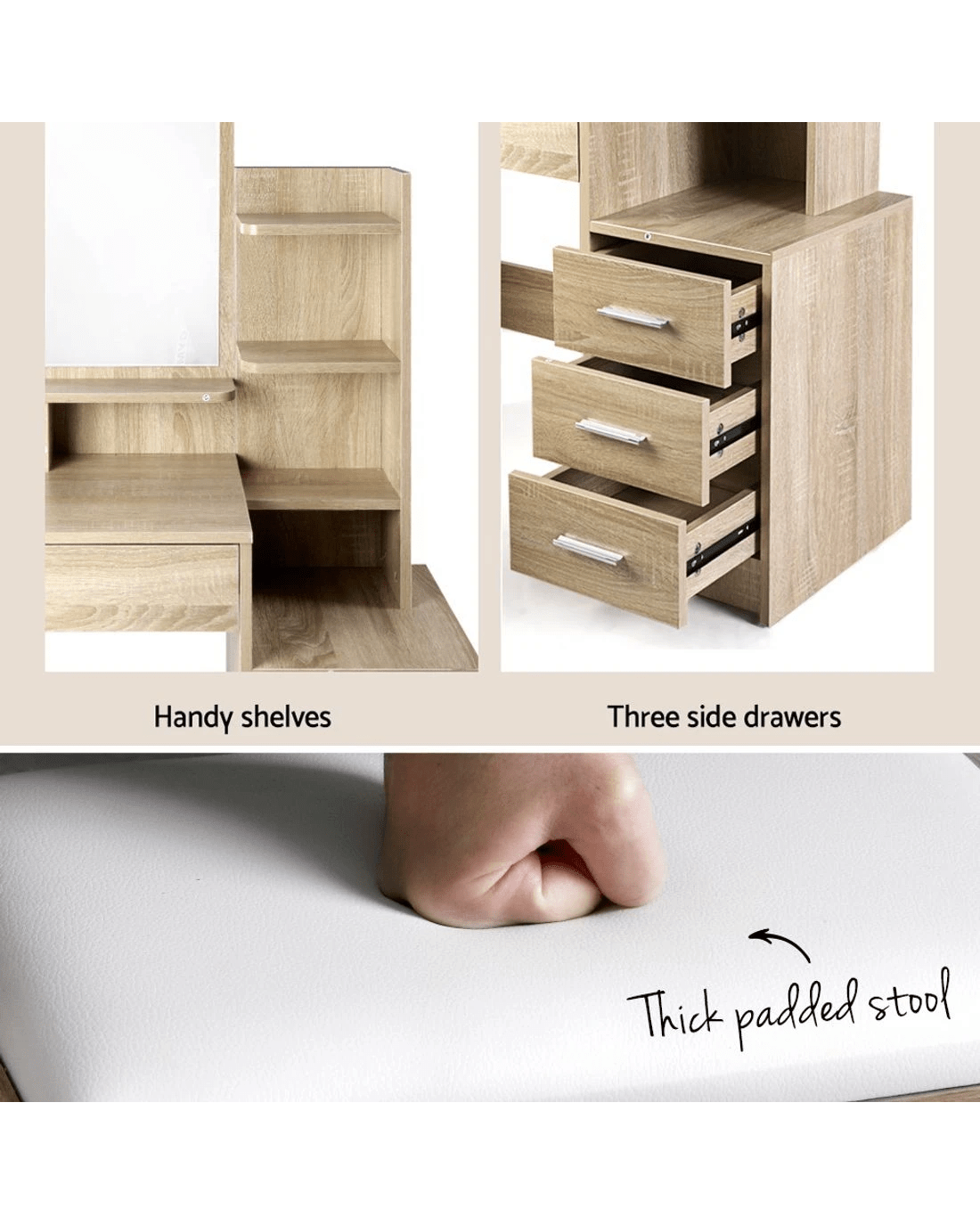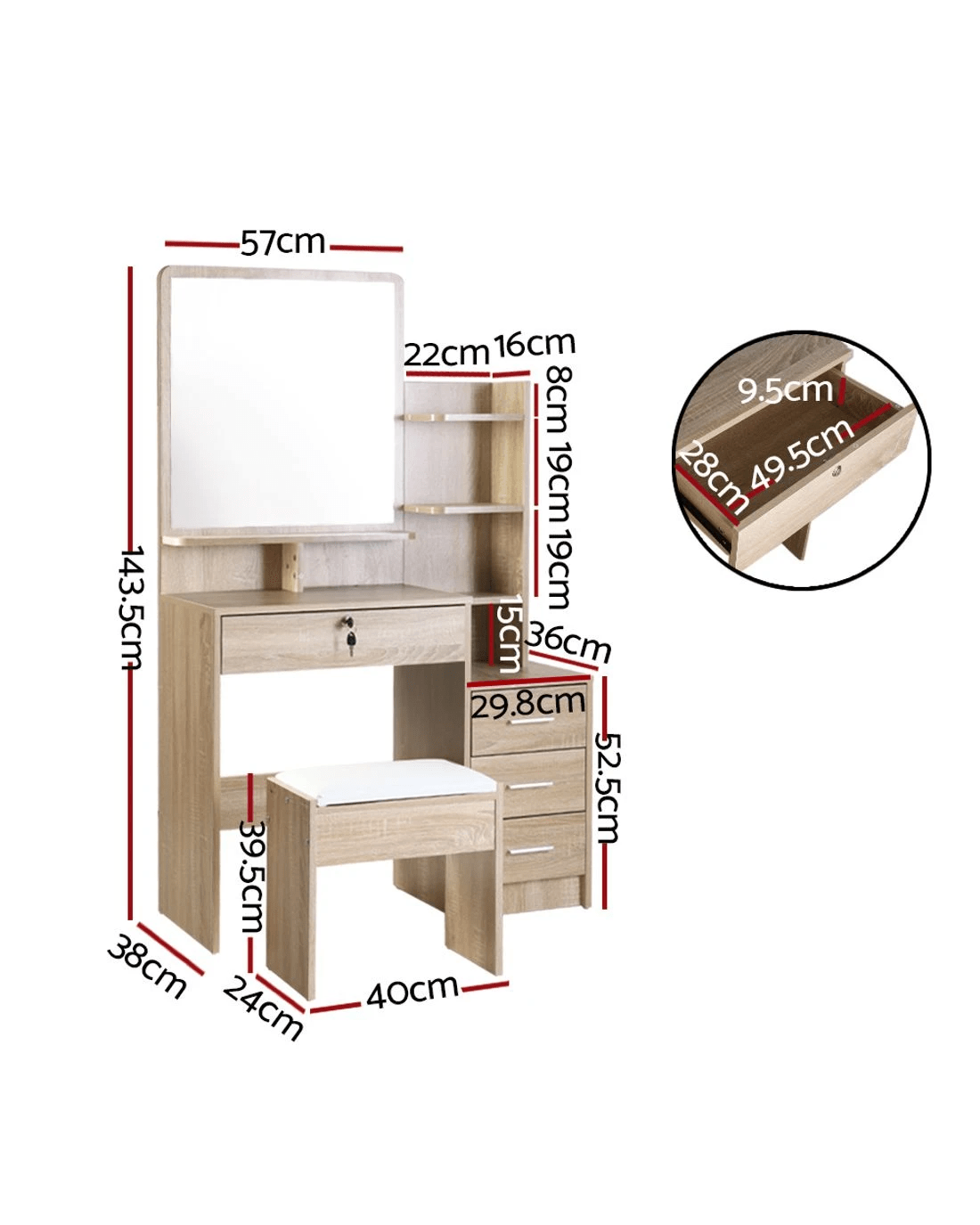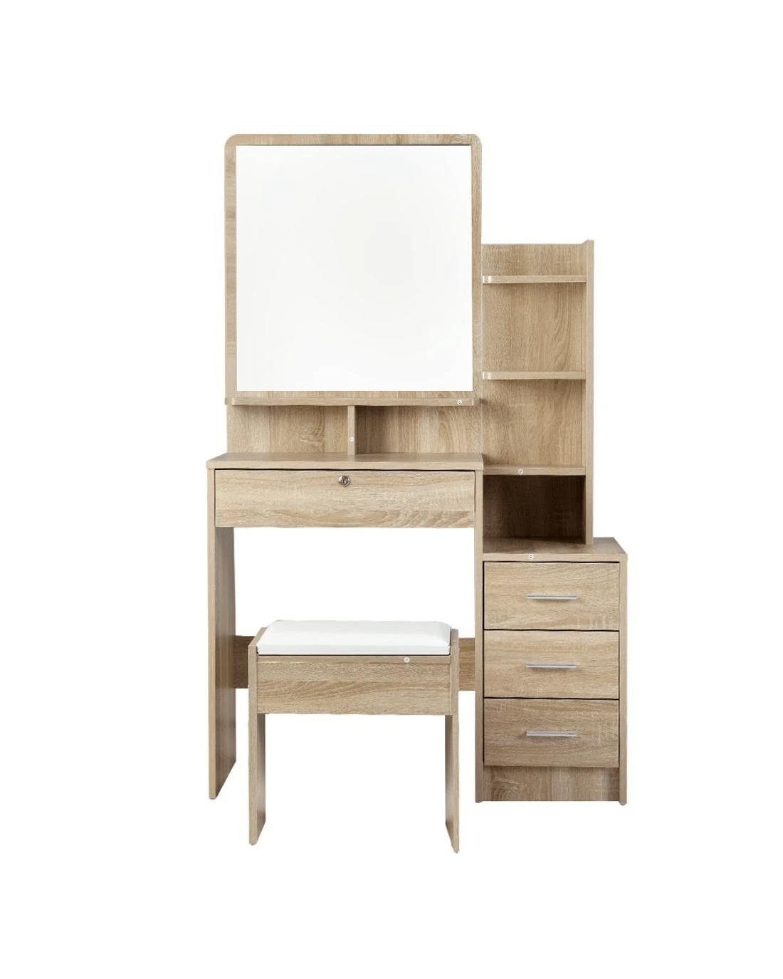 Sold by Aisle SixArtiss Dressing Table Stool Set 4 Drawers Oak - Natural