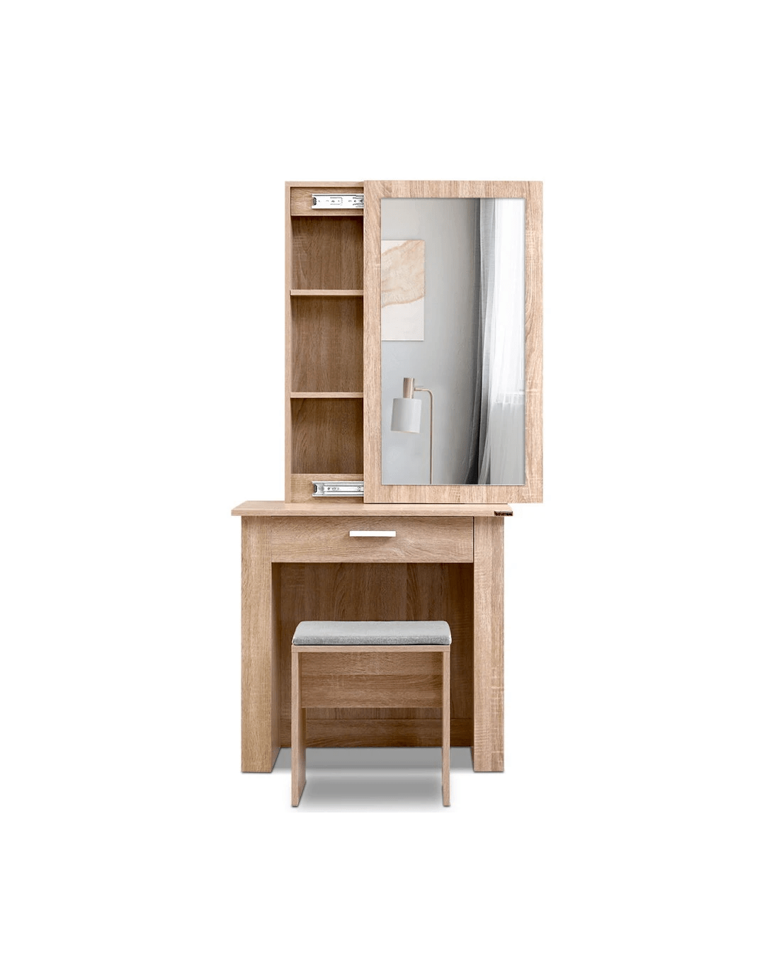 Sold by Aisle SixArtiss Dressing Table Stool Set Sliding Mirror Oak Demi - Natural