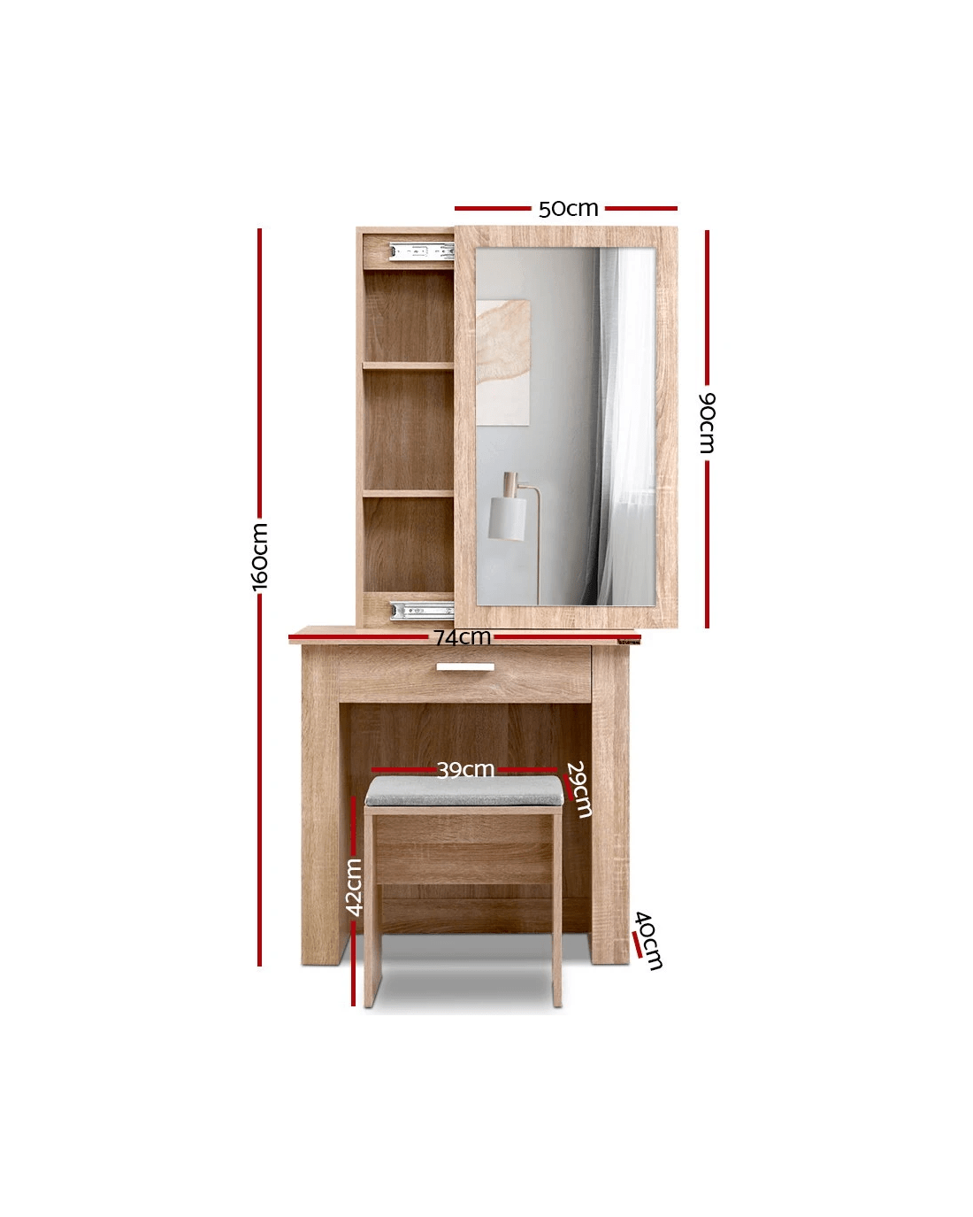 Dressing table overall dimensions: 74cm x 40cm x 160cm
