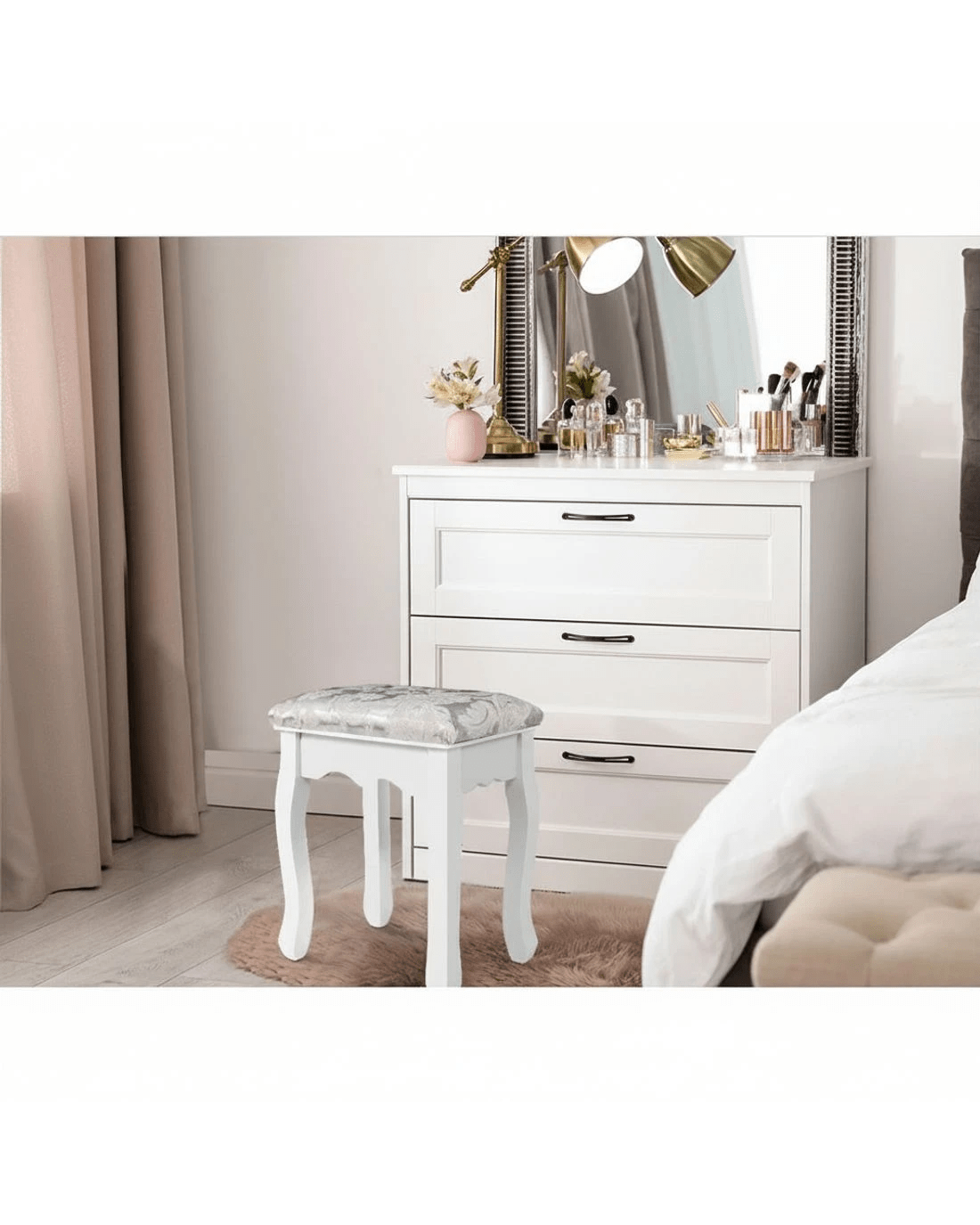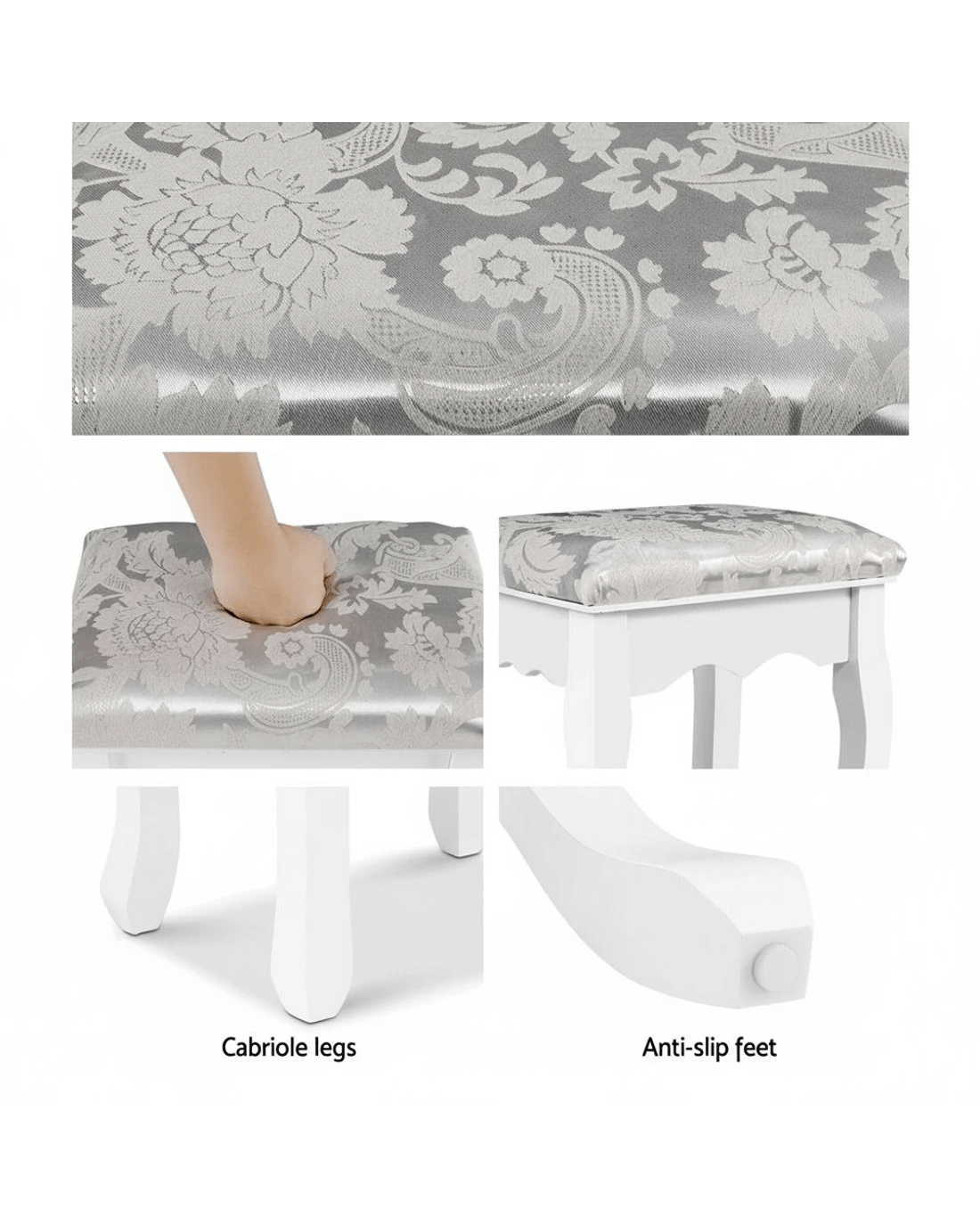 Add a touch of classical charm to your bedroom with our luxurious period-style Artiss Dressing Stool. Graceful and elegant, the stool exudes finesse in every corner and aspect. Much like yourself as you prepare for the day in alluring beauty. And with this dressing stool, you can do so in both comfort and style. Made with meticulous craftsmanship, the dressing stool is upholstered in beautifully embroidered linen fabric and padded with extra thick sponge for luxurious comfort, so that you can better focus on applying your make-up rather than be distracted by your sore backside. The stool also features elegantly curved cabriole legs and anti-slip feet to keep your floors pristine from scratches and damage. Best of all, the dressing stool can be perfectly paired with your dressing table, no matter the style.