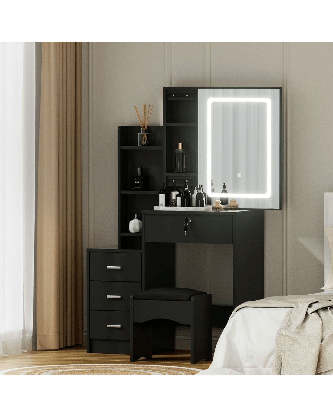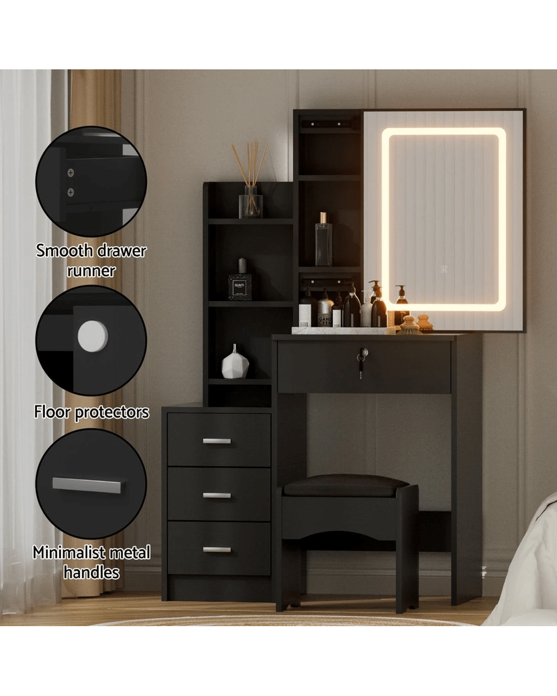 Sold by Aisle SixArtiss Dressing Table Vanity Desk Set Stool Led - Black