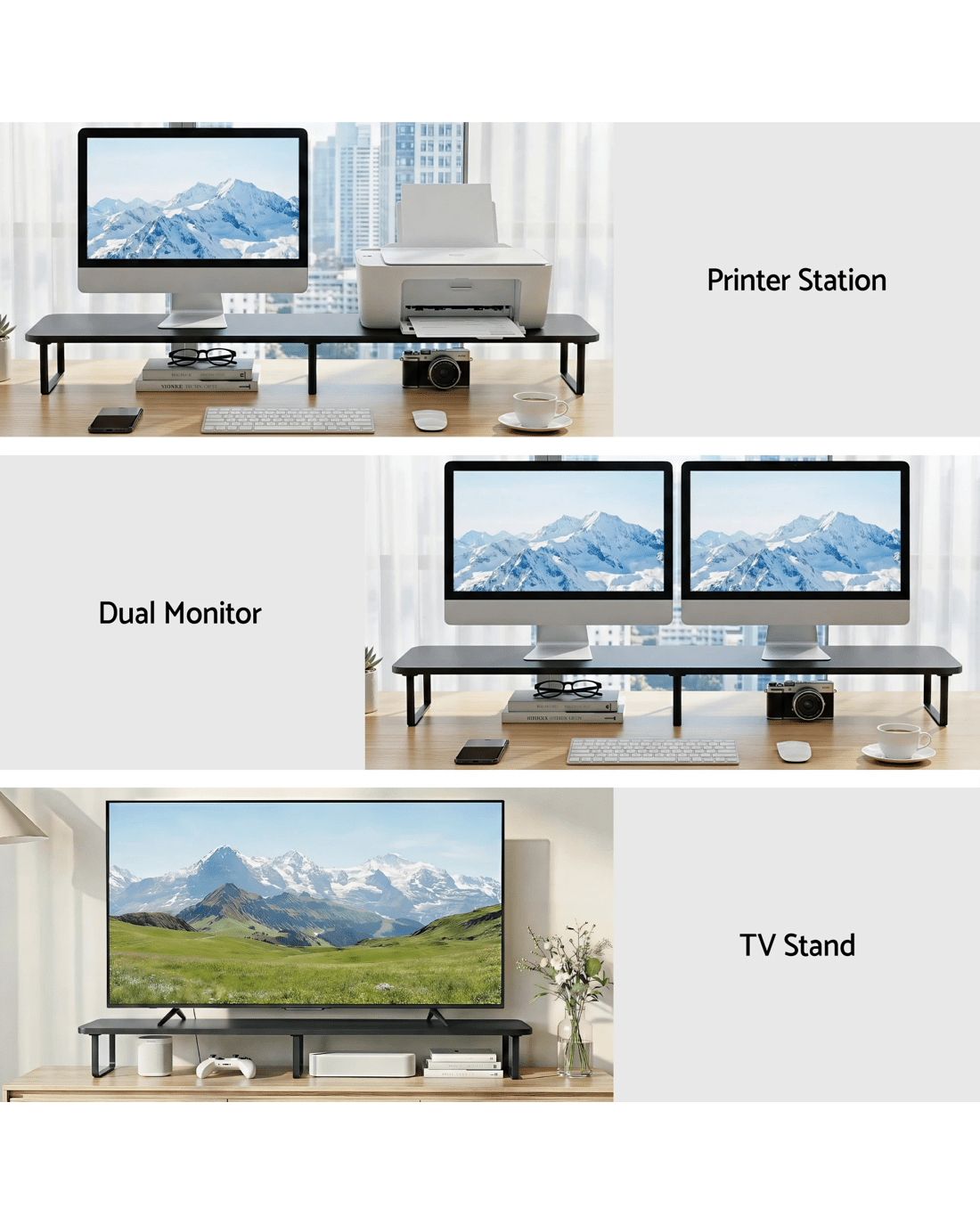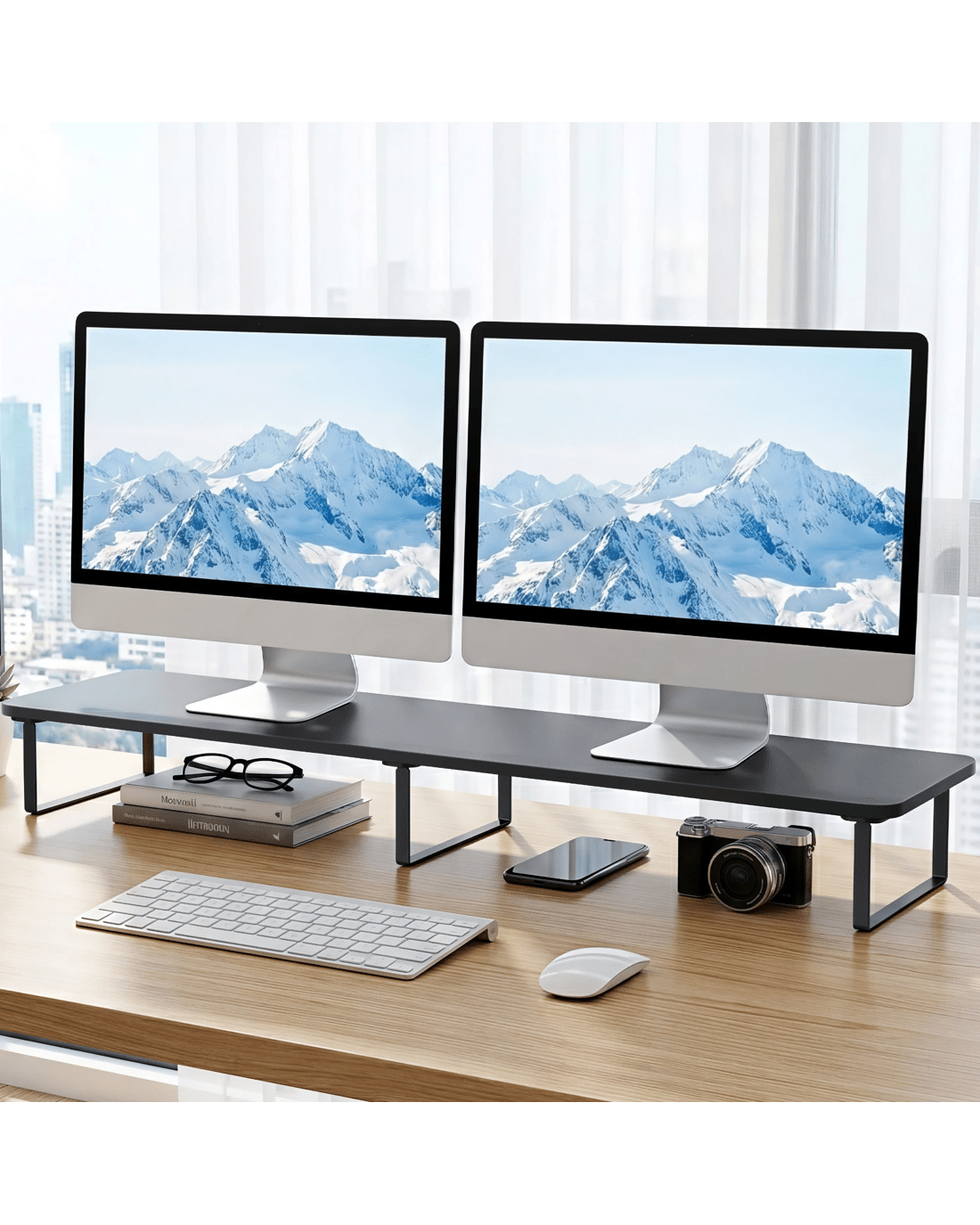 Artiss Dual Monitor Stand 100cm Riser Large Laptop Stand Desk Organiser - Black