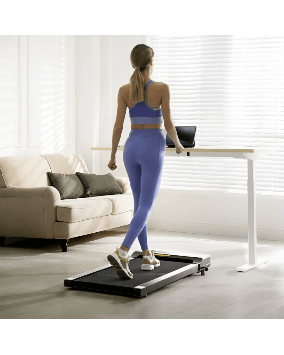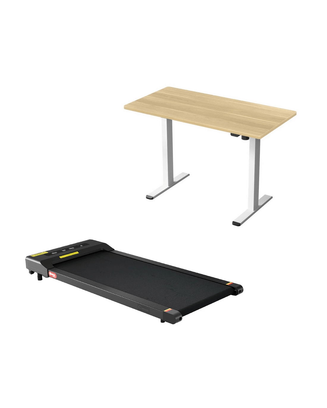 The electric standing desk with integrated treadmill and walking pad offers a versatile workspace solution, allowing users to alternate between standing, walking, or sitting, promoting productivity and health.
