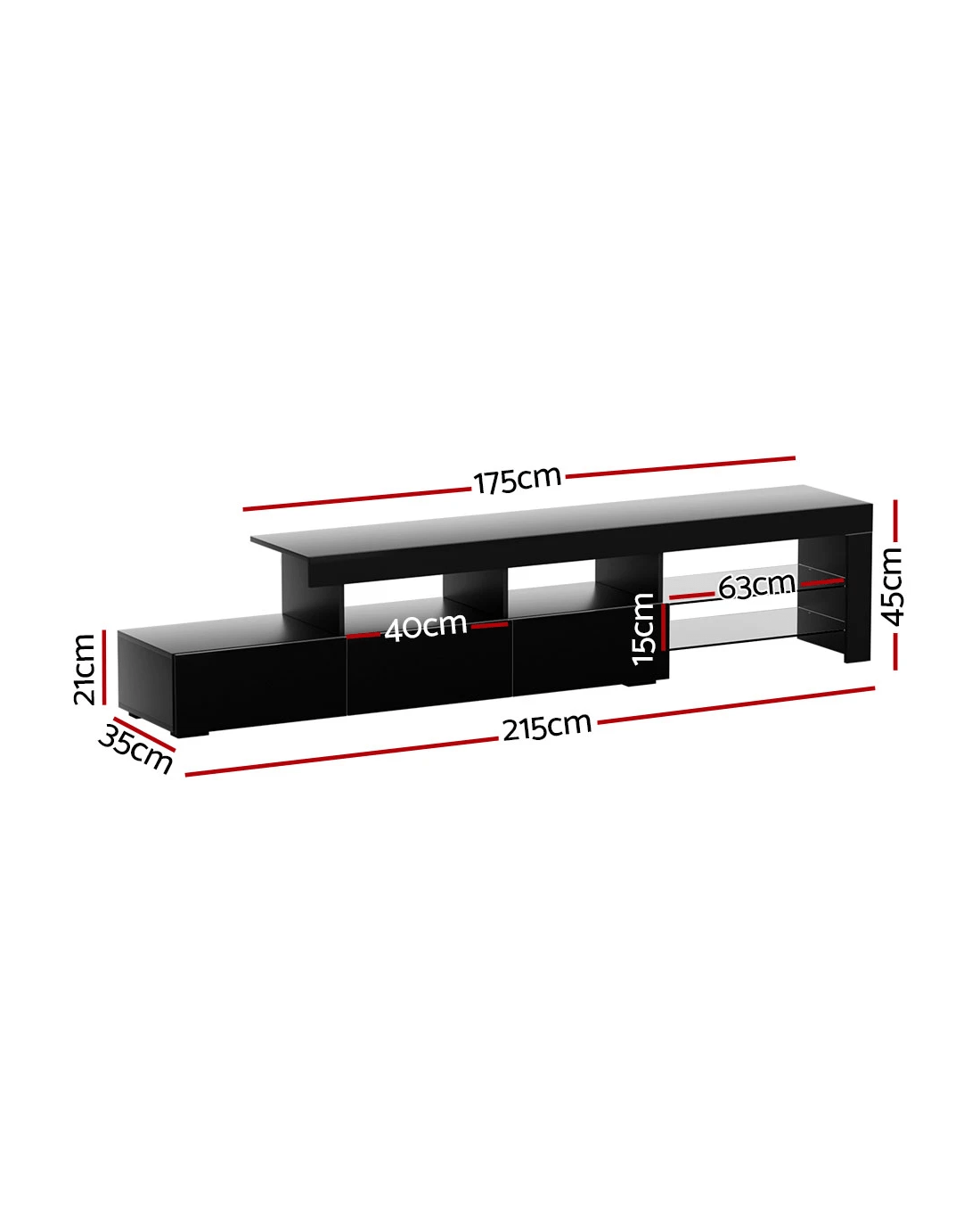 Want to add a WOW-effect to your living room? Our Artiss LED entertainment unit won't disappoint you. Boasting a unique combination of functionality and creativity, this entertainment unit is designed to enhance your living space and create a pleasant ambience. The entertainment unit features built-in RGB LED lighting that you can customise into 16 different colours and four flashing modes with a touch of a button. It will perfectly complement your modern home decor and enable you to achieve a one-of-a-kind look. Having been constructed from 15mm thick particle board with UV high gloss on the front and melamine finish, this piece of furniture is quite sturdy and will withstand the test of time. It has spacious drawers with smooth metal runners for hassle-free operation and two tempered glass shelves to store all your entertainment paraphernalia. Bring this uniquely designed entertainment unit for your home today.
